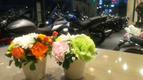 開店お祝いで頂いた、お花のいい匂いが充満しています。(*´▽`*)クラ~