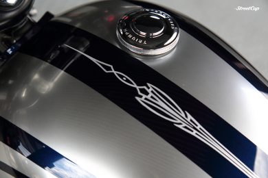 さらに英国のデザイナーとともに細部までこだわったオリジナルデザインのペイントがフュエルタンク、シートカウル、サイドカバーそしてフロントフェンダーに施され、職人の手描きによるコーチラインがその美しいボディに彩を添えます。