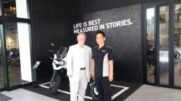 先日、トライアンフ ジャパン前社長のブルームさんが、トライアンフ東京にお越しになられました。