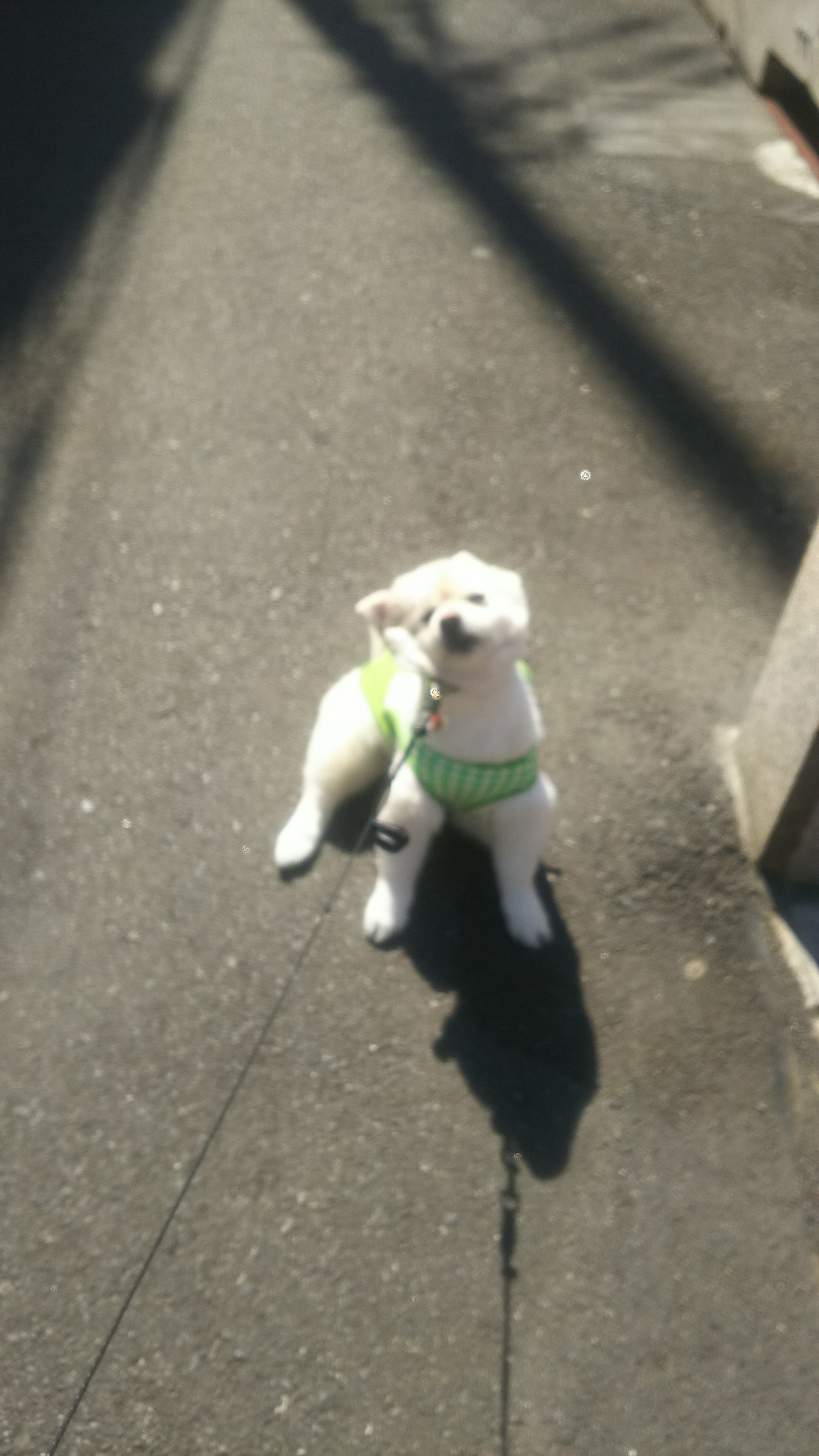 ※ お散歩いく前に、手でアスファルトをタッチして