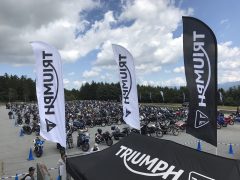 Triumph National Rally 入場口わきに掲示されているQRコードを読み取り、エントリーコードを入手してゲートを通ります。