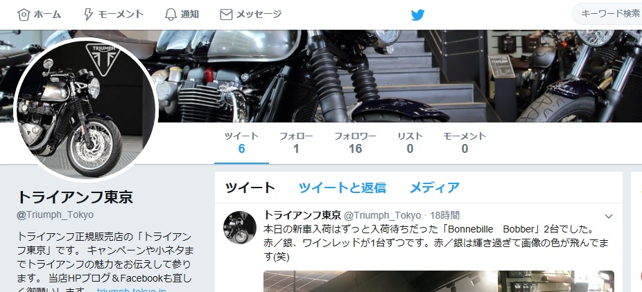 遅ればせながらトライアンフ東京でもTwitterを開始致しました!
