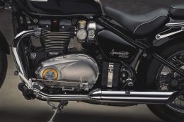 エンジンは水冷並列2気筒SOHC 8バルブ、270°クランク。Triumph Bonneville 1200のエンジンにBobber向けのエンジンチューンを施しました。レスポンスに優れた最新の高トルク型エンジンは、Bonneville T120と比較すると4,500rpmで10%のトルクアップ、先代の2015 Speedmasterと比較すると42%アップという大幅なトルク向上を果たしています。Speedmasterには最新技術も実に巧みに取り込まれています。ライドバイワイヤ、2種類のライディングモード(ROADとRAIN)、ボタンひとつで簡単操作のクルーズコントロール、ABS、切替式トラクションコントロール、トルクアシストクラッチ、イモビライザーなどが搭載されます。