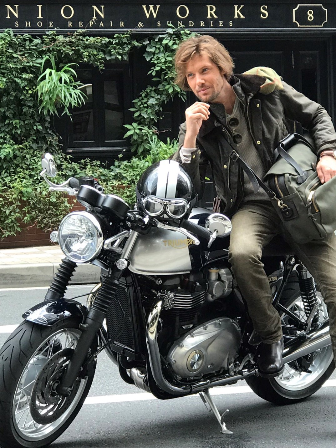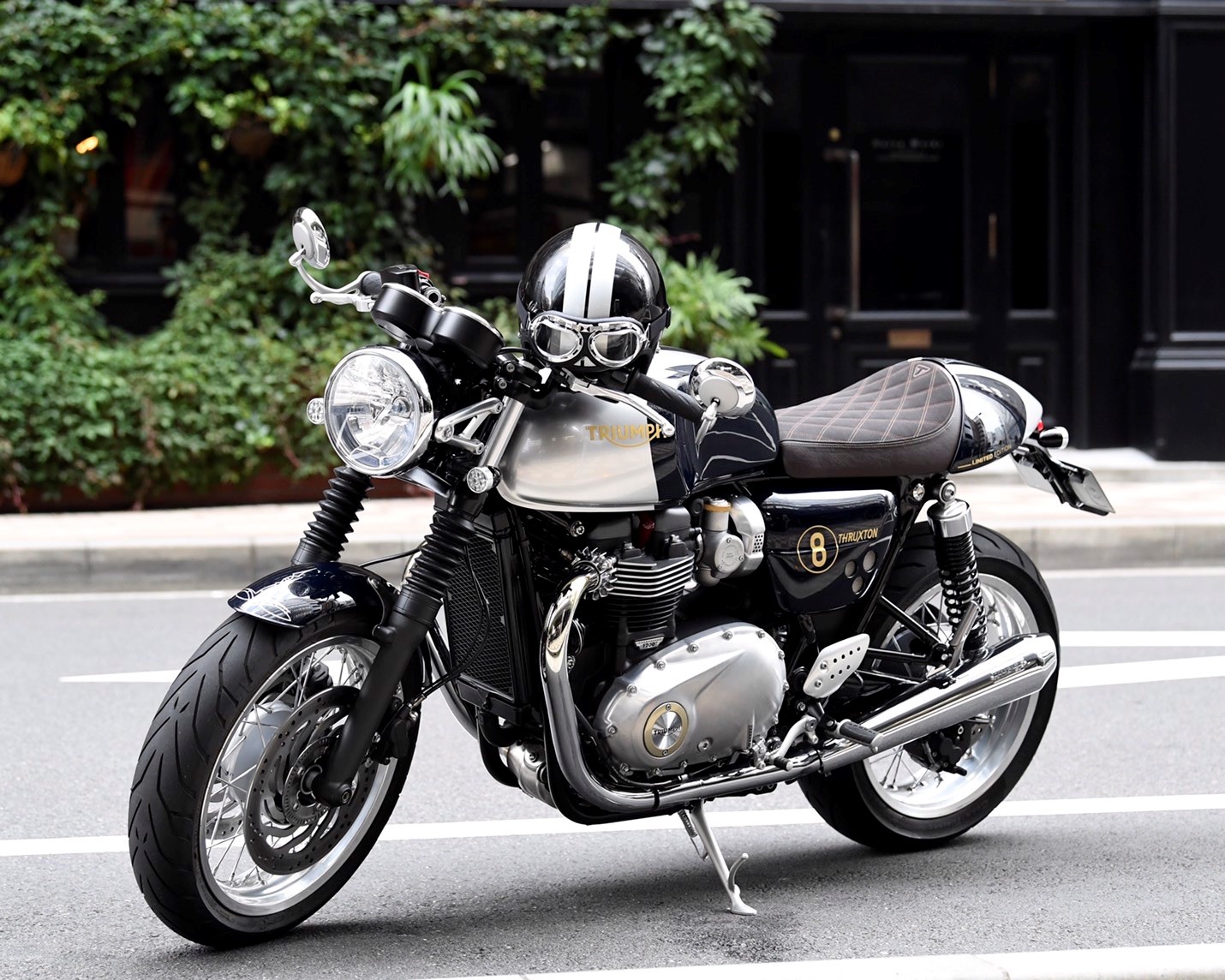 きのうブログにアップしたSafari 12月号にご自身のThruxton Tokyo Limitedをご提供されたオーナー様からご連絡があり、撮影時の別ショットを送っていただきました。