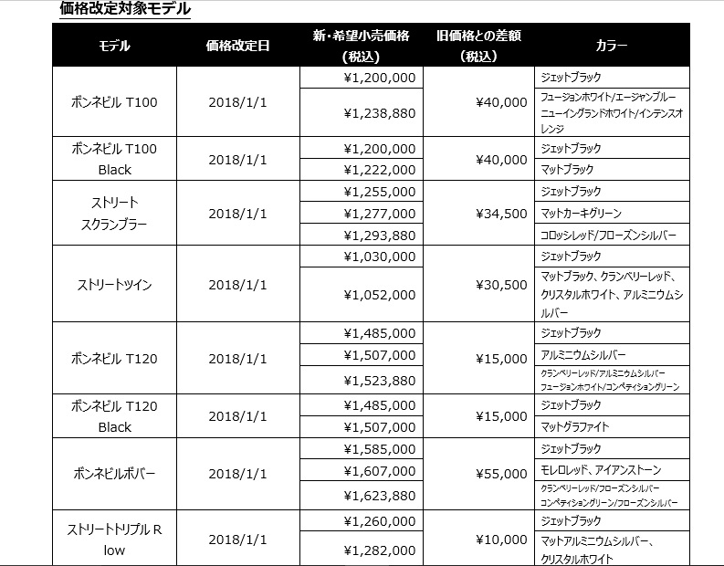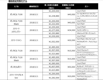 来年の1月1日から一部のトライアンフ新車車両が値上がりとなります。