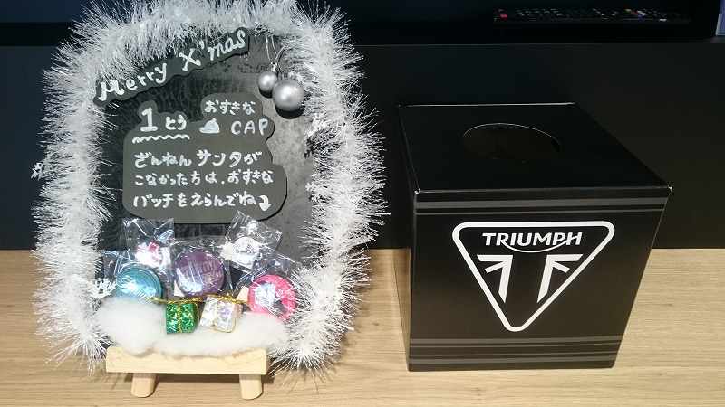 引いて頂き、見事「1等」を当てた方にはトライアンフ純正アパレルで画像の中でお好きな