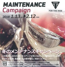 期間中にご来店頂いた方へお乗りのトライアンフ車両に無料点検を実施致します。