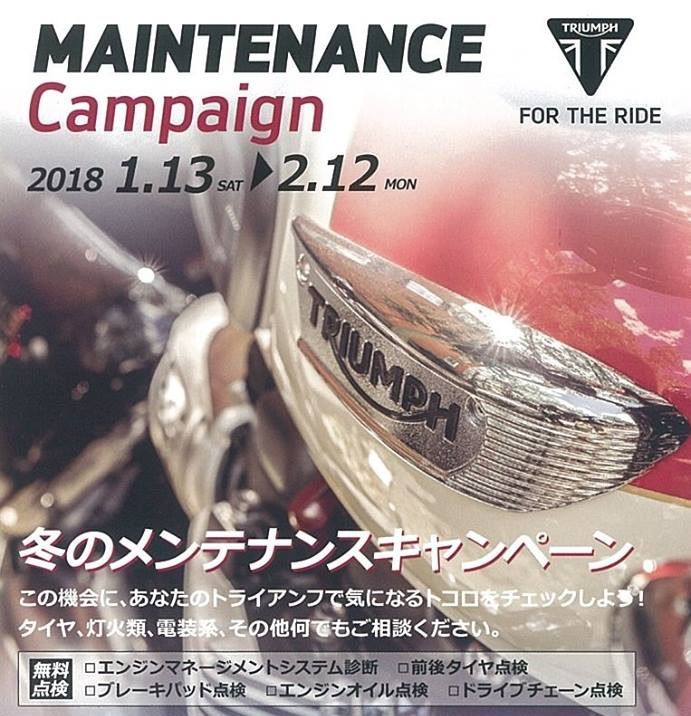今週末の1/13(土)より「冬の無料メンテナンスキャンペーン」を実施致します。