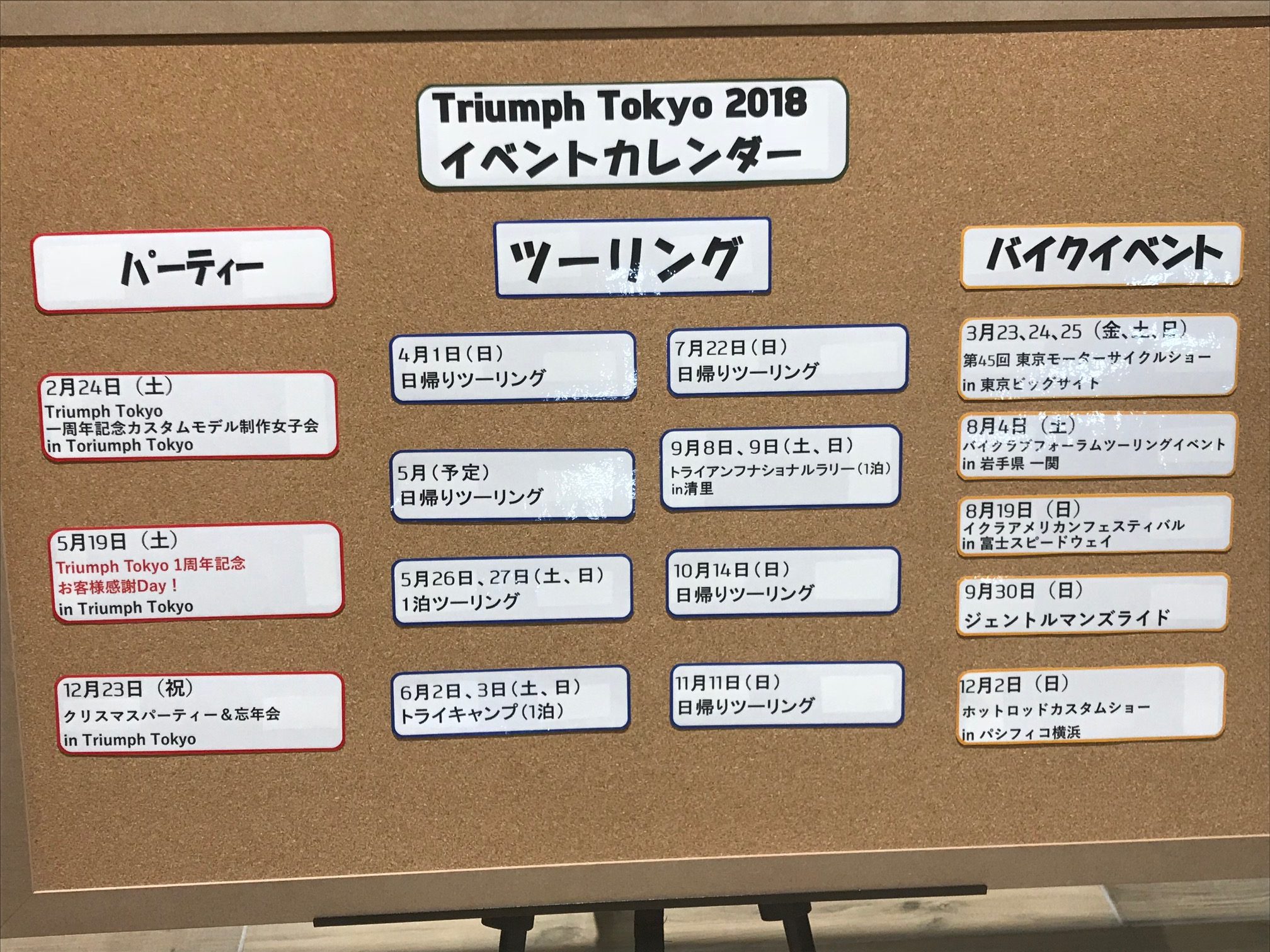 Triumph Tokyoの2018年イベントカレンダーが遂に出来ました!