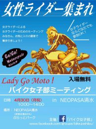 イベント名の「Lady Go Moto!」は、オートバイを楽しもう、女性パワーでバ