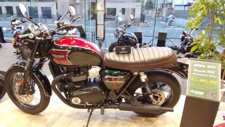 もちろん “Bonneville T100 Triumph Tokyo 1st Anniversary Edition” も、お隣に展示してございます。