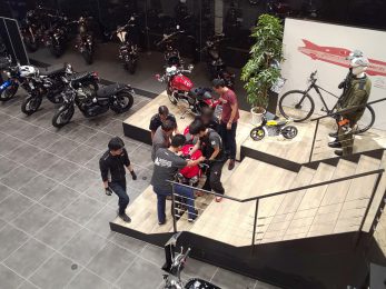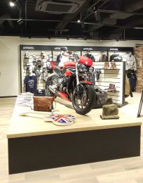 当店2階のアパレルのコーナーにバイクが展示されていたら、そりゃカッコイイだろう、とはずっと思っていましたが、ご来店された事のあるお客さまならご存知の通り、2階への移動手段は階段のみとなっております。