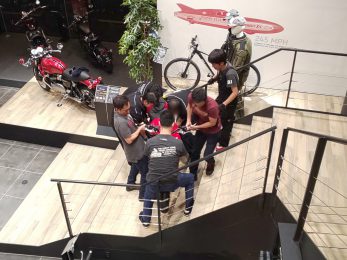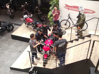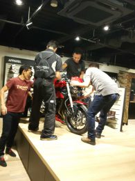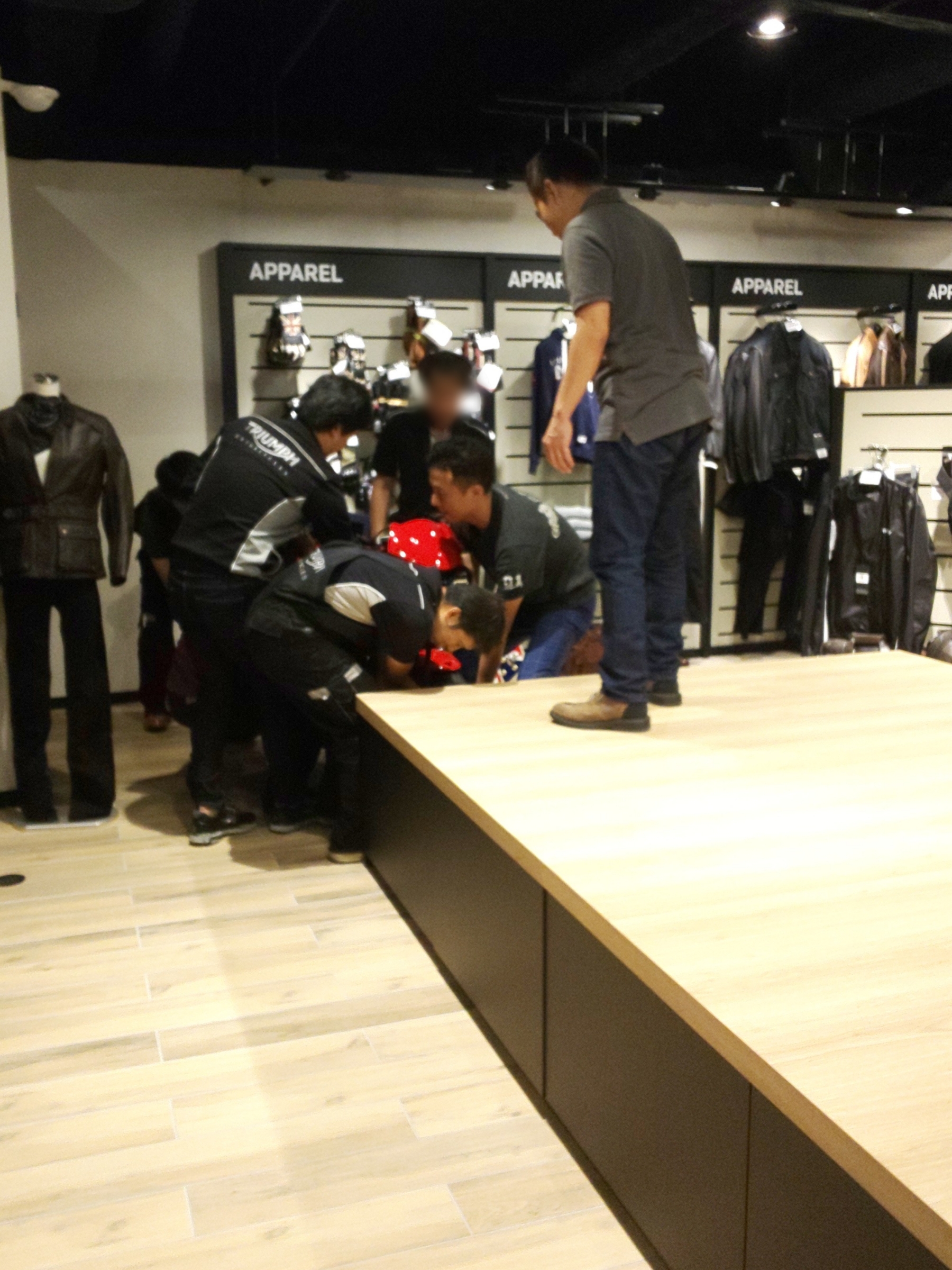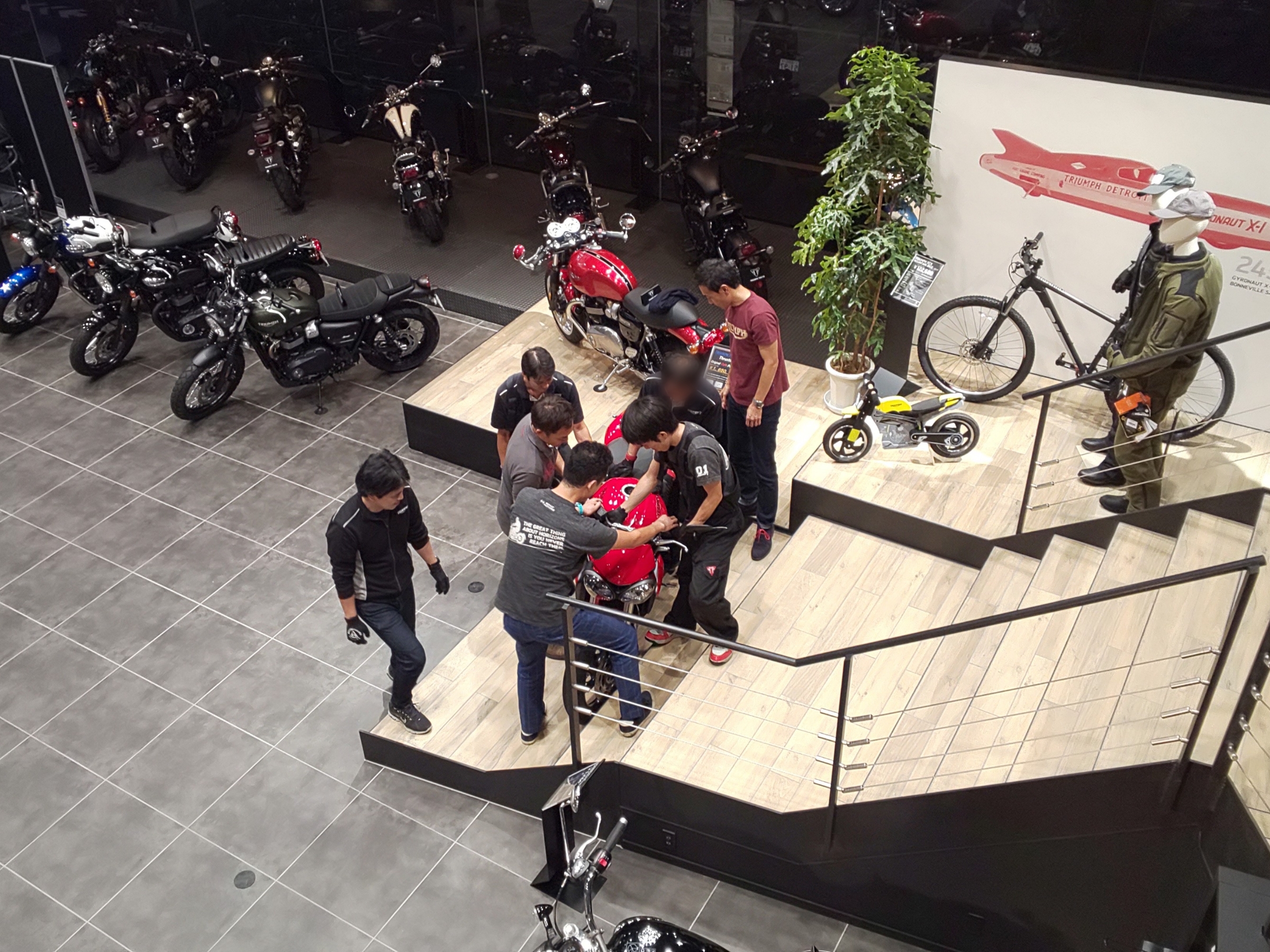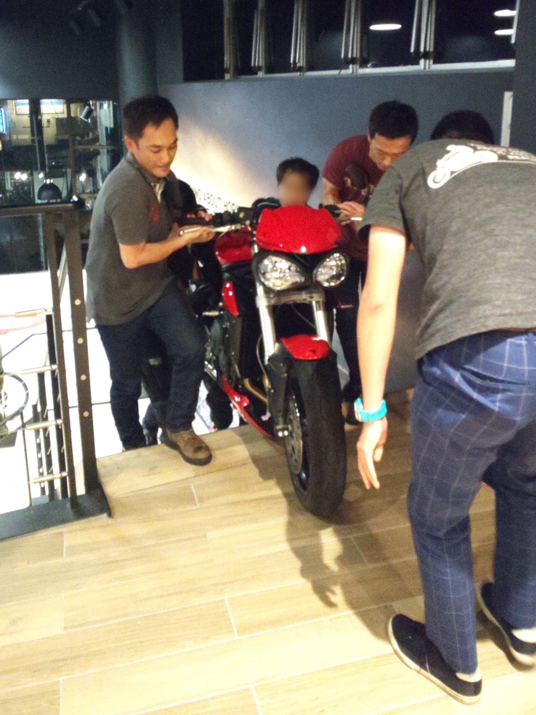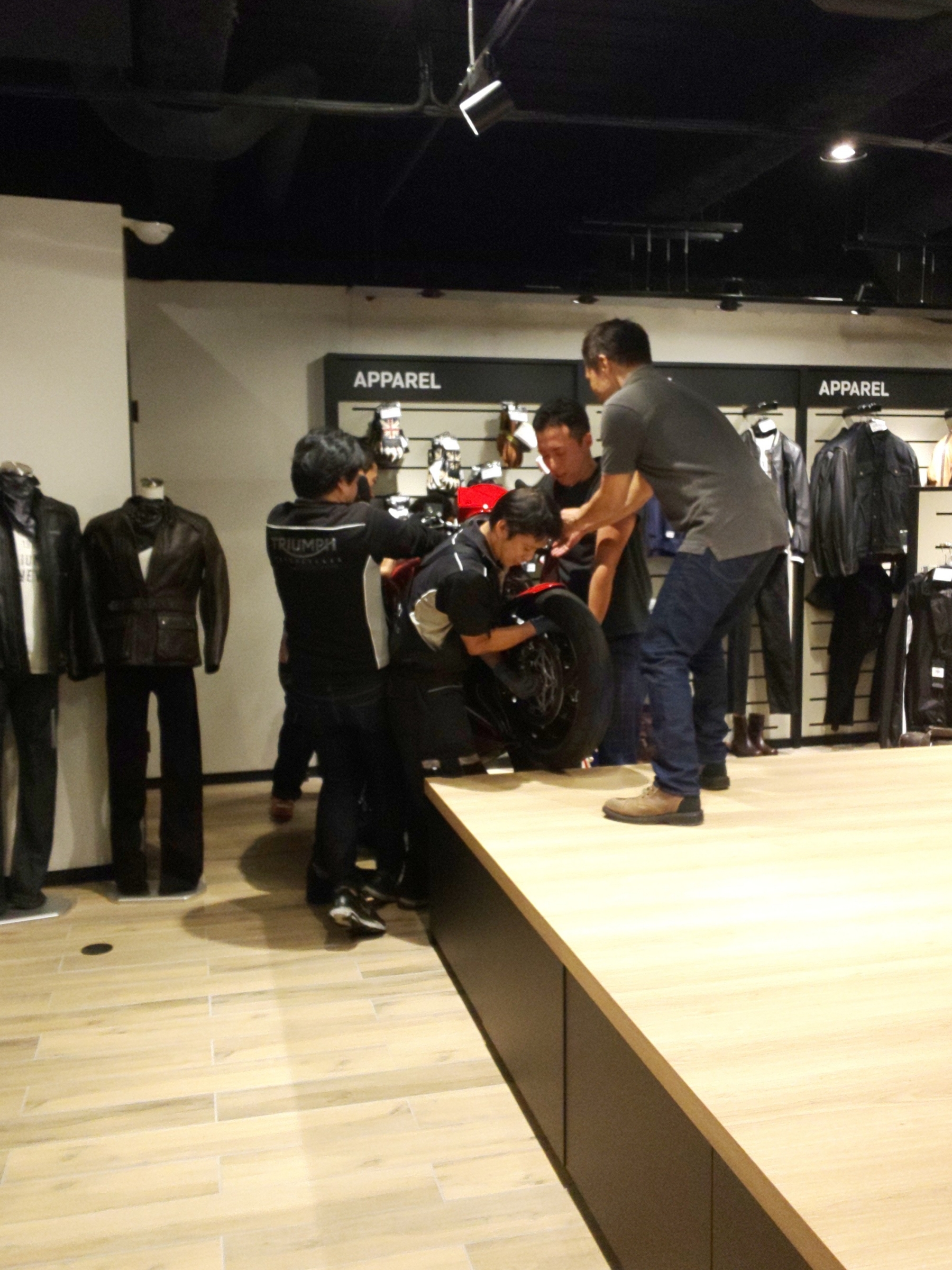 トライアンフ東京では、男性スタッフに弊社社長も加わりまして、なにかが始まりました。