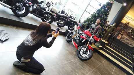 そして、最近トライアンフ東京で流行っている(?)「写真を撮る人を撮る」