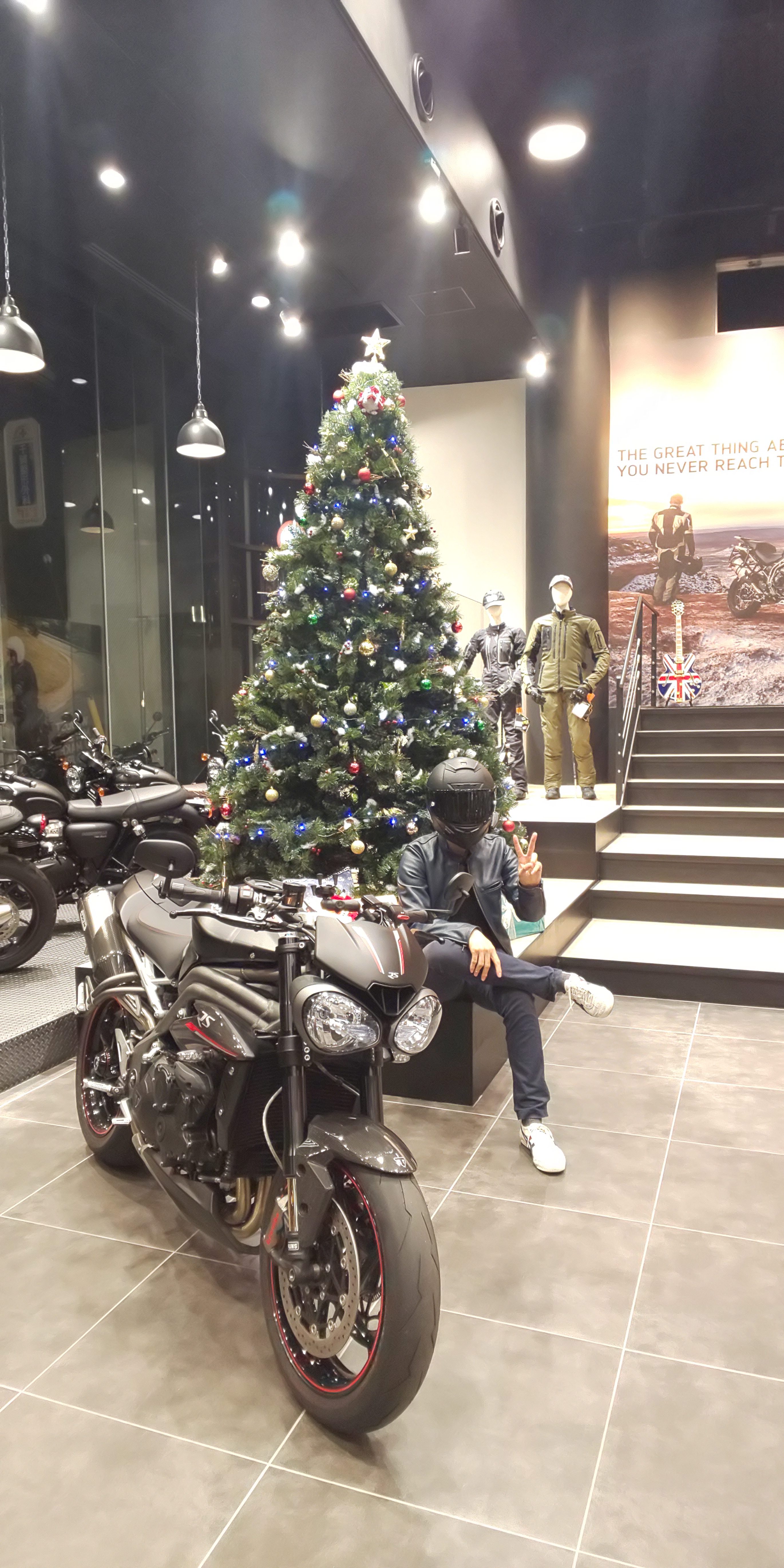 そして、クリスマスカラーのSpeed Tripleに、ちょっとした悪戯を( *´艸`)