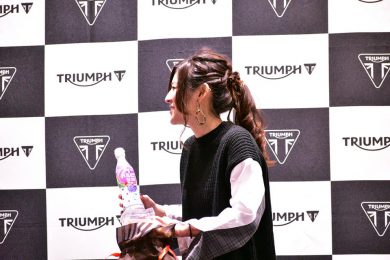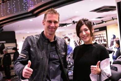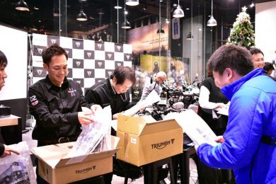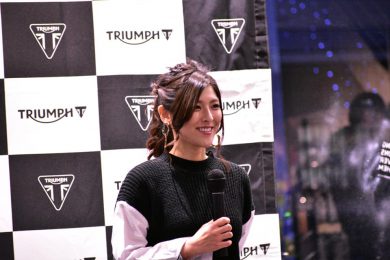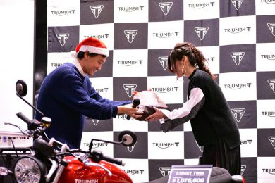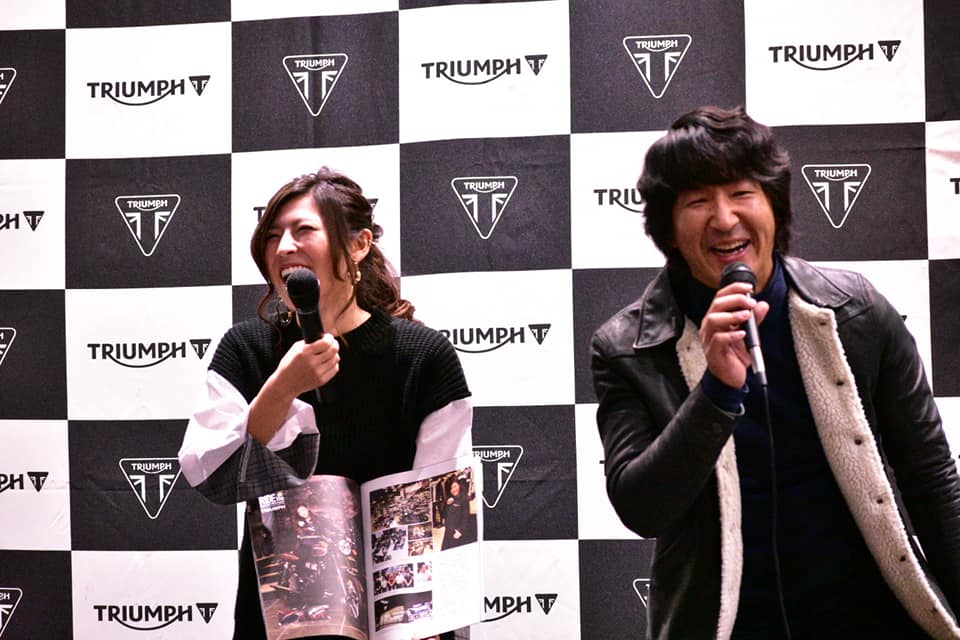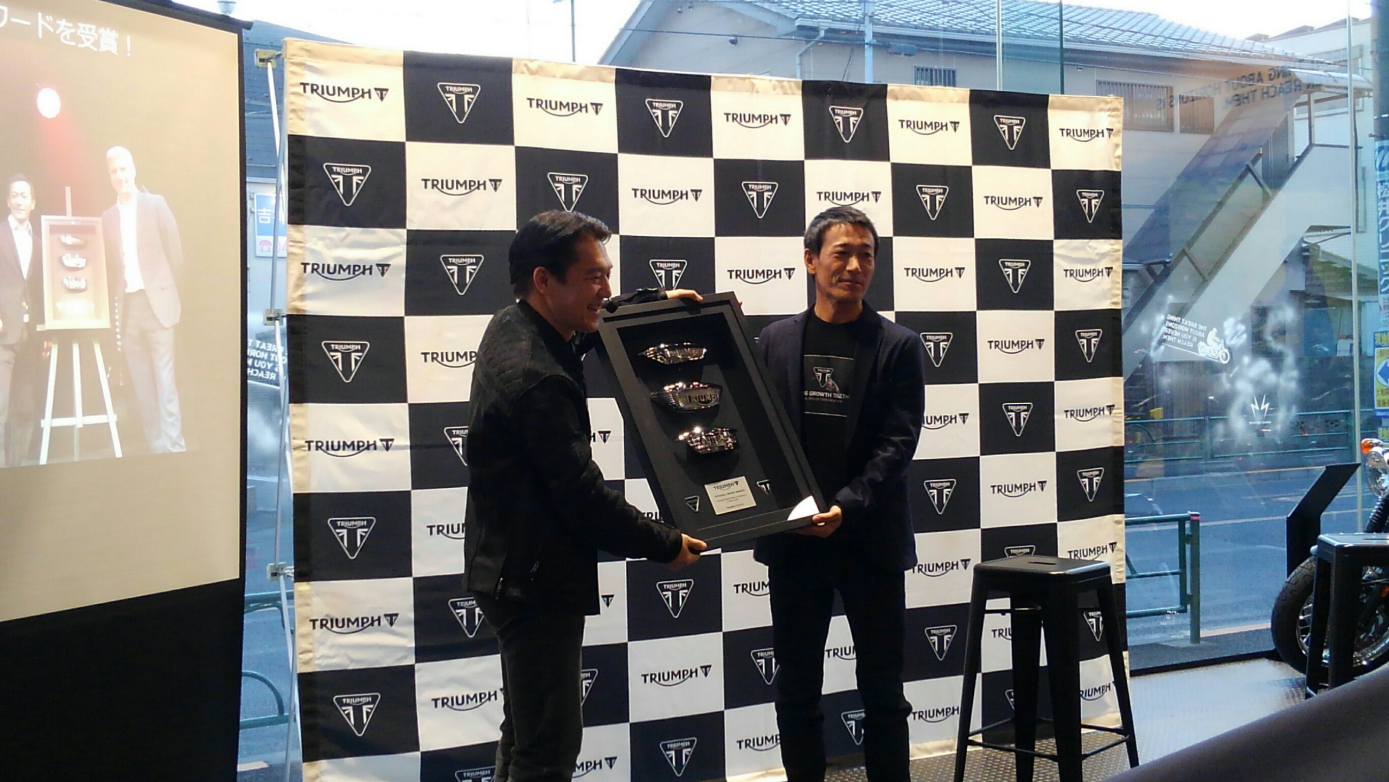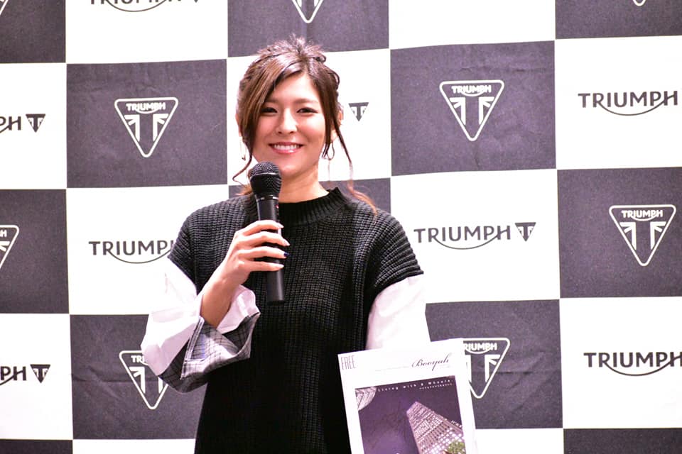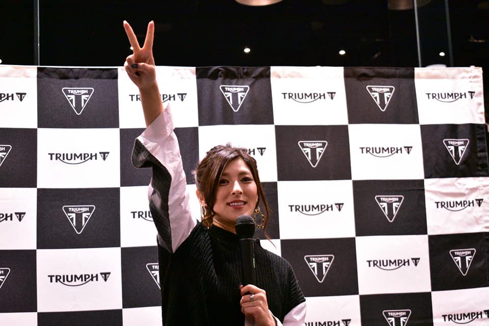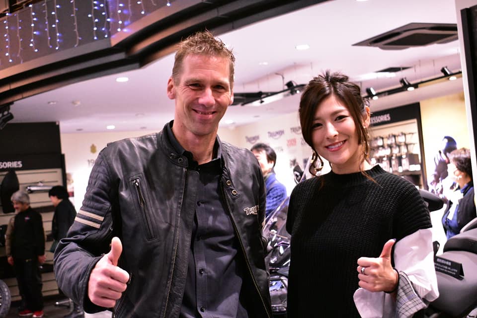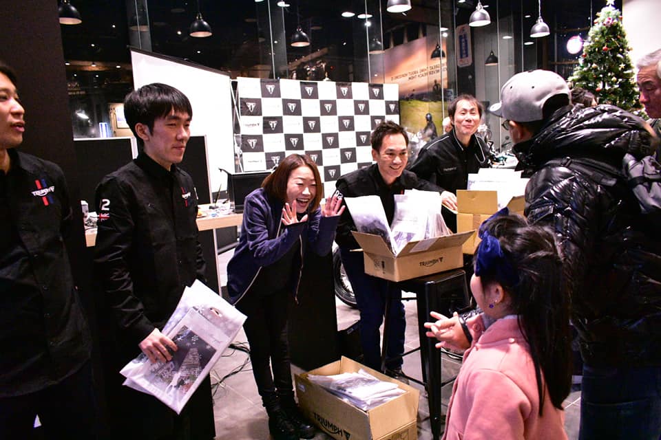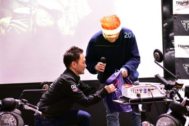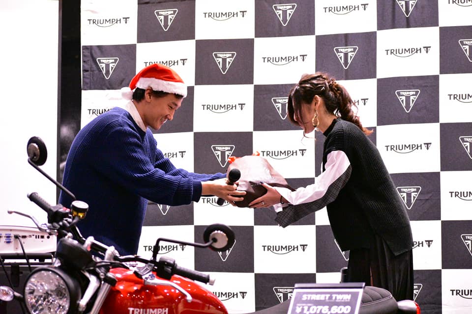 トークショーの最後には、Team87と当店トライアンフ東京のスタッフから、華さんへのサプライズプレゼントもご用意しちゃいました( ̄ー ̄)