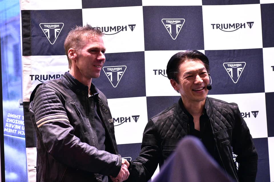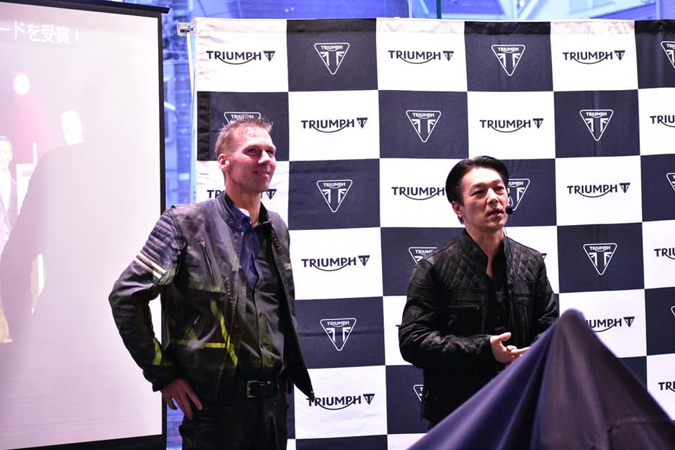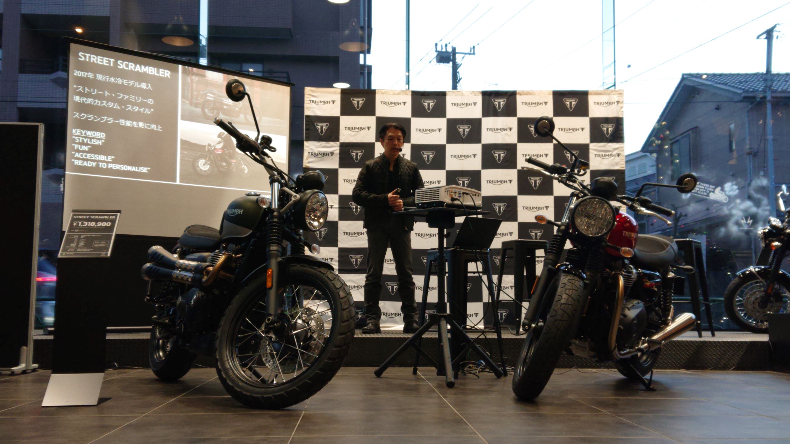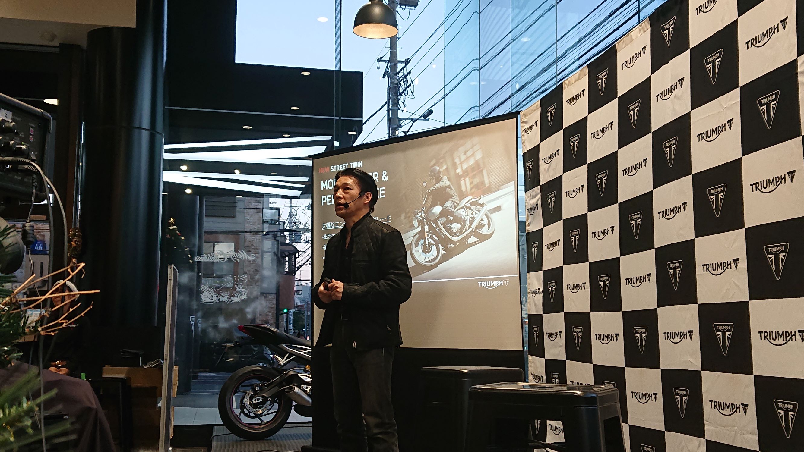 トライアンフモーターサイクルズジャパンの野田社長による、新型ストリートスクランブラー、ストリートツインのお披露目(*´▽`*)