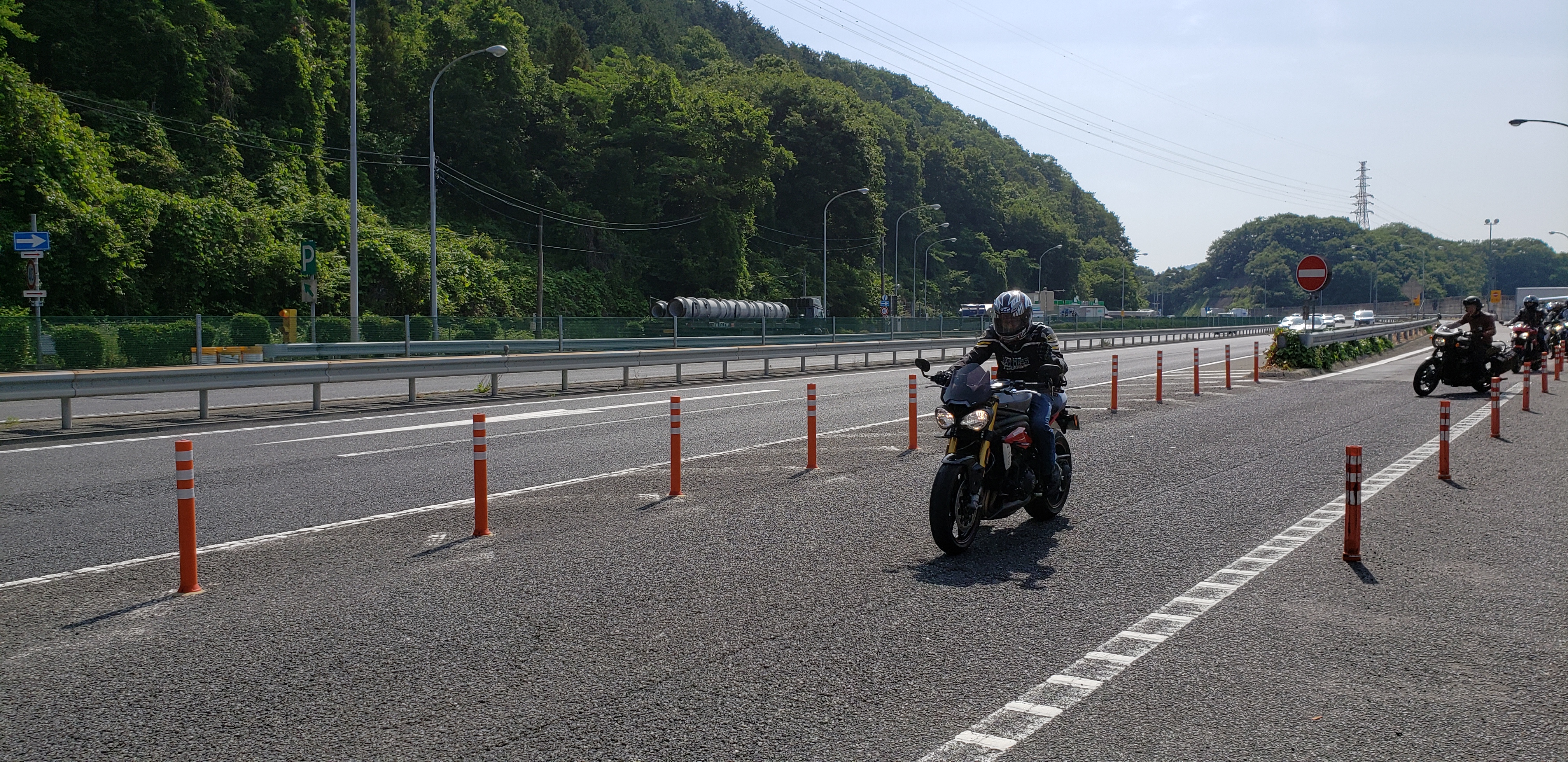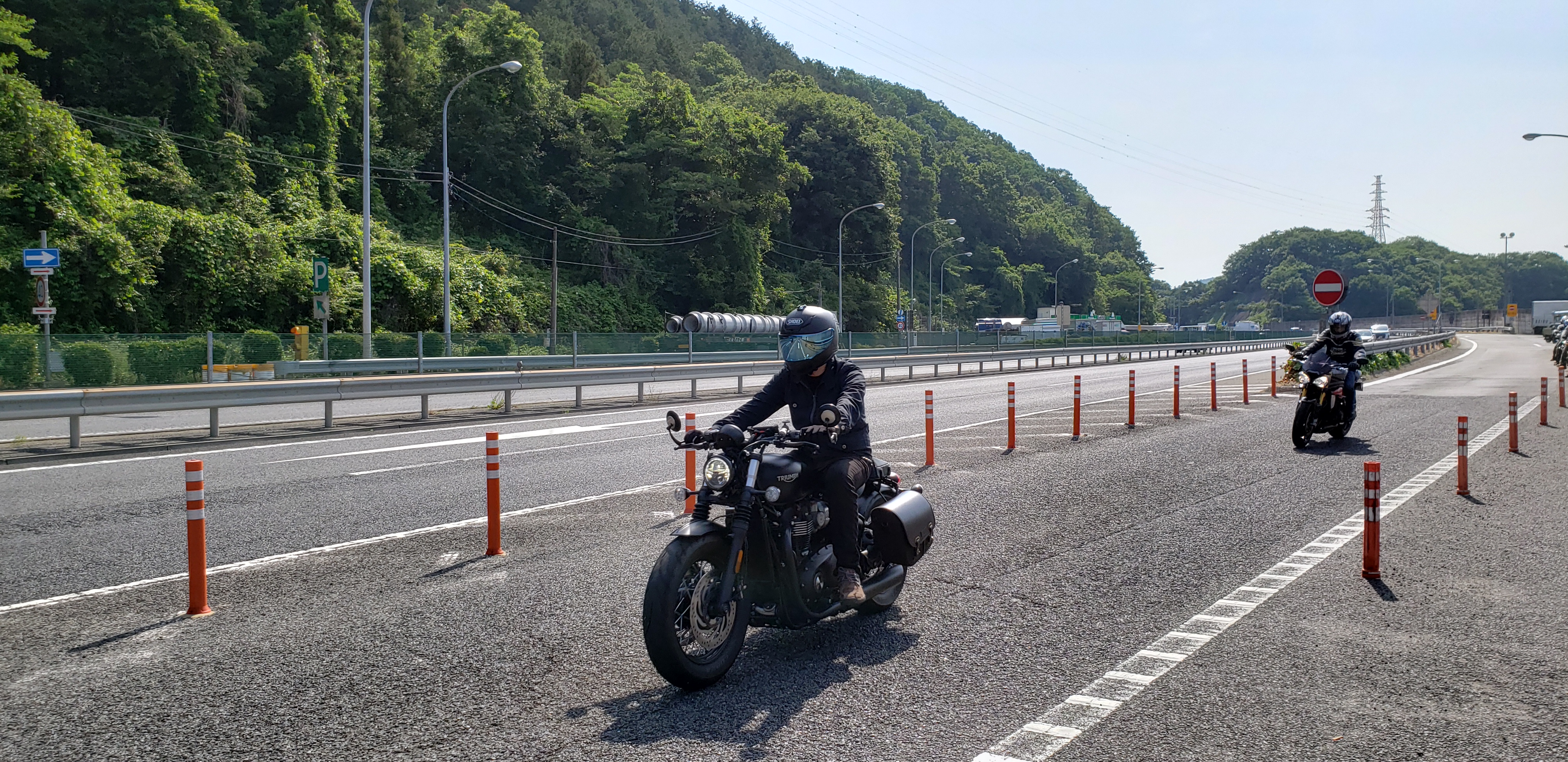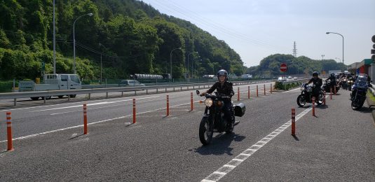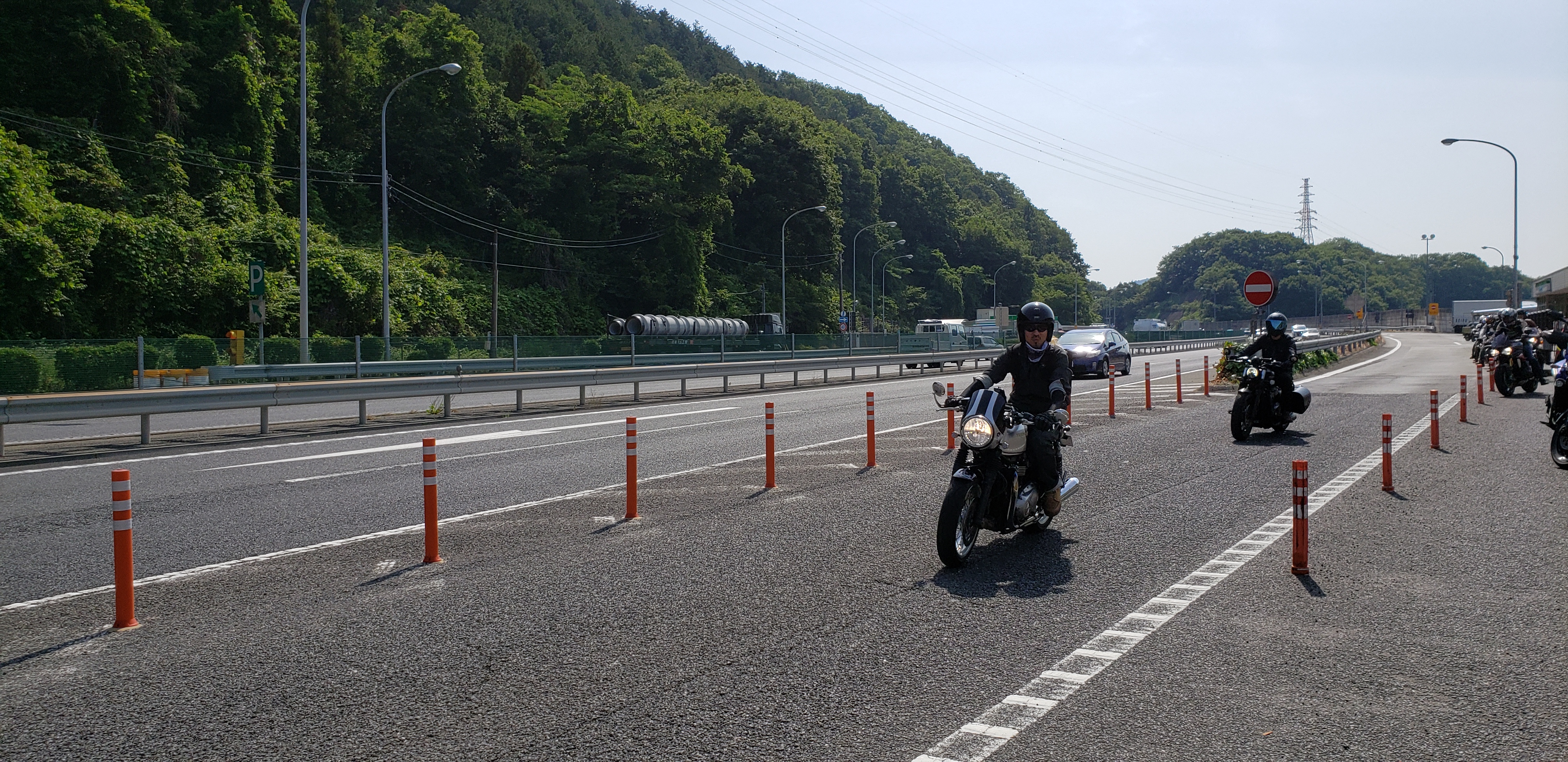 当日の朝、大きなラブレターが見える集合地点には16台のトライアンフたちが!