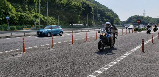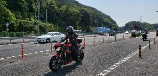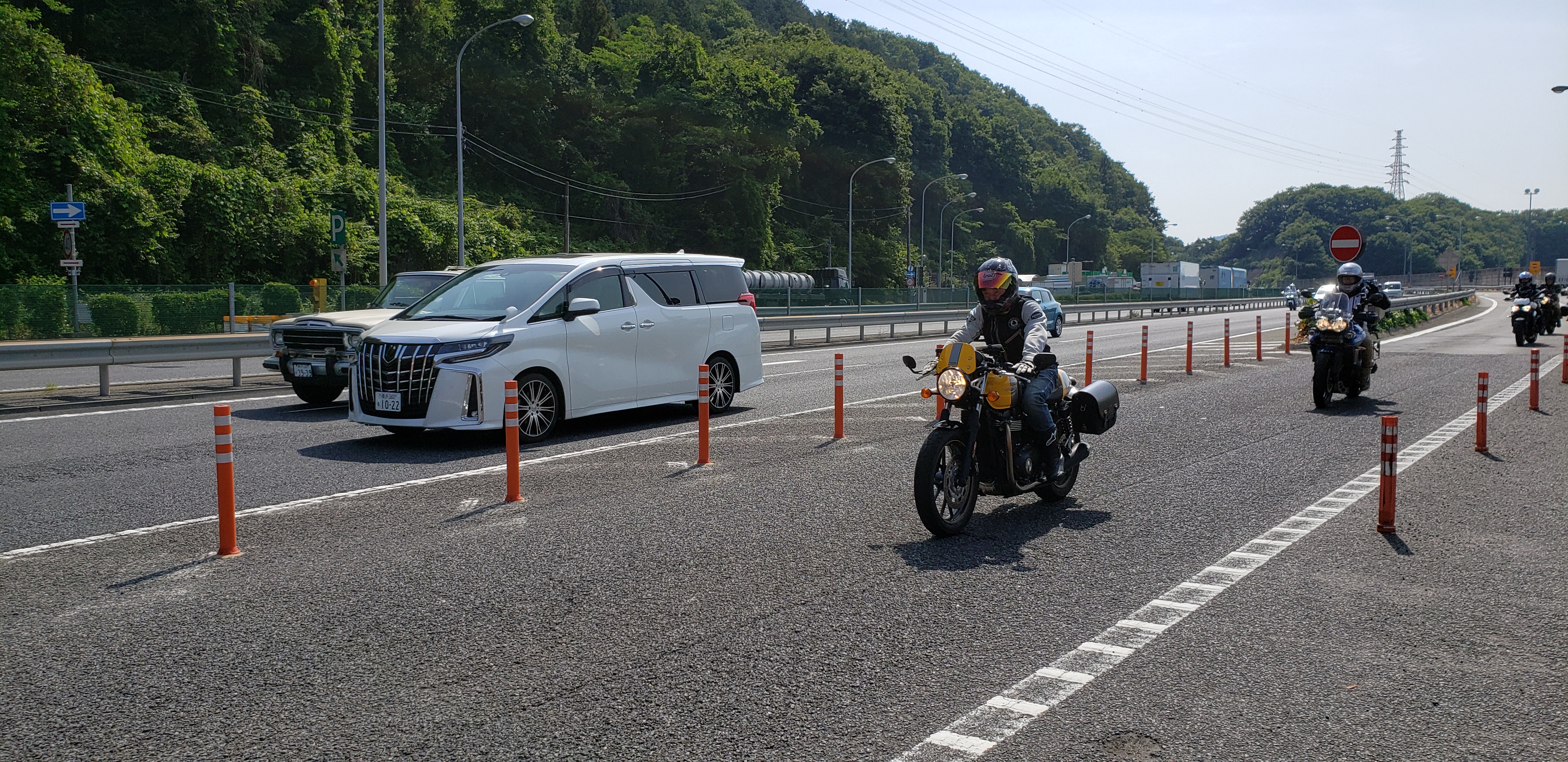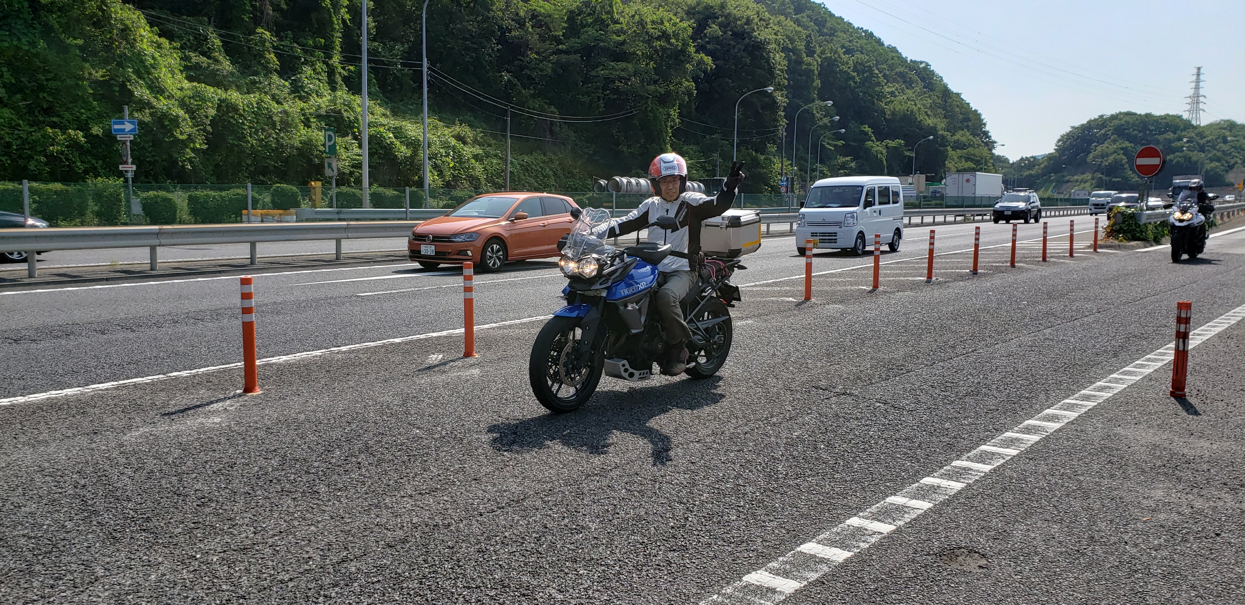 当日の朝、大きなラブレターが見える集合地点には16台のトライアンフたちが!