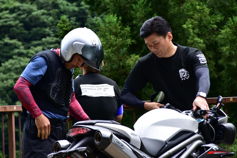 湿り気を帯びた優しい風にふかれながら、バイク談義に花を咲かせていらっしゃいました。