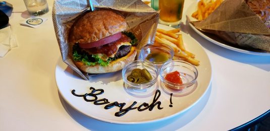 席に着いてしばらくすると、お目当てのBooyah Burgerの登場です(∩´∀`)∩