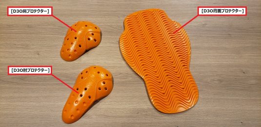 プロテクターは安心のD3Oを肩・肘・背中に標準装備。