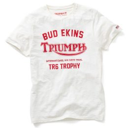 白地に赤文字でシンプルながらインパクト抜群のTシャツですが、ここで注目するのは一番上に描かれている「BUD EKINS」です。