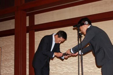 当社代表の付き人的な立場で完全に油断していた私も壇上から急に呼び出されて記念撮影。