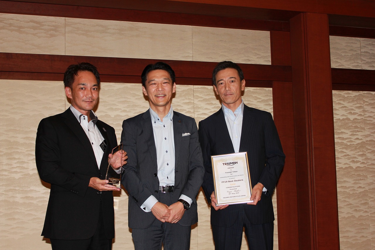 各部門の表彰が進む中、われわれトライアンフ東京も登壇させていただきました。