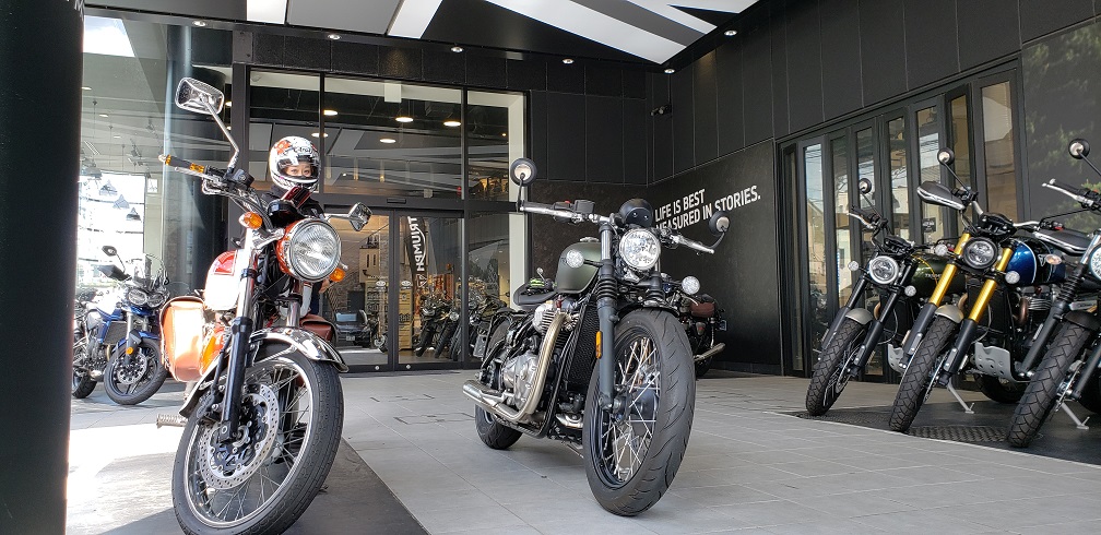 駒田は向かって左側のBonneville 250(違う)、OKBは右のBonneville Bobberで出発です!