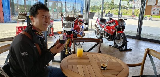 実はトライアンフ東京の紅一点であり、今年見事に大型二輪を取得した「みんな大好き駒田センパイ」がまだバイクに慣れていないということで、練習のためにOKBが”鬼”教官役で一緒にツーリングに行っているのを「OKBライディングスクール」と一部の人達の間で呼んでいたのです。(マギラワシー)