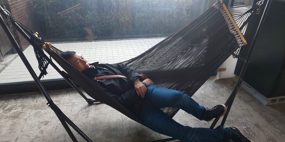 居心地よすぎて眠くなってしまったOKBはハンモックからハミ出しながらお休みモード。