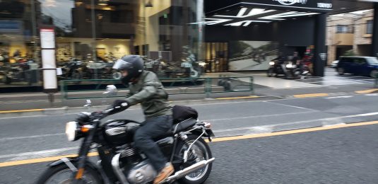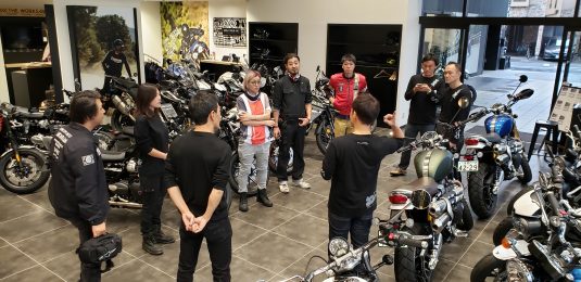 トライアンフ東京出発の時点で8名のライダー(+イベント・プロデューサーTサン)。