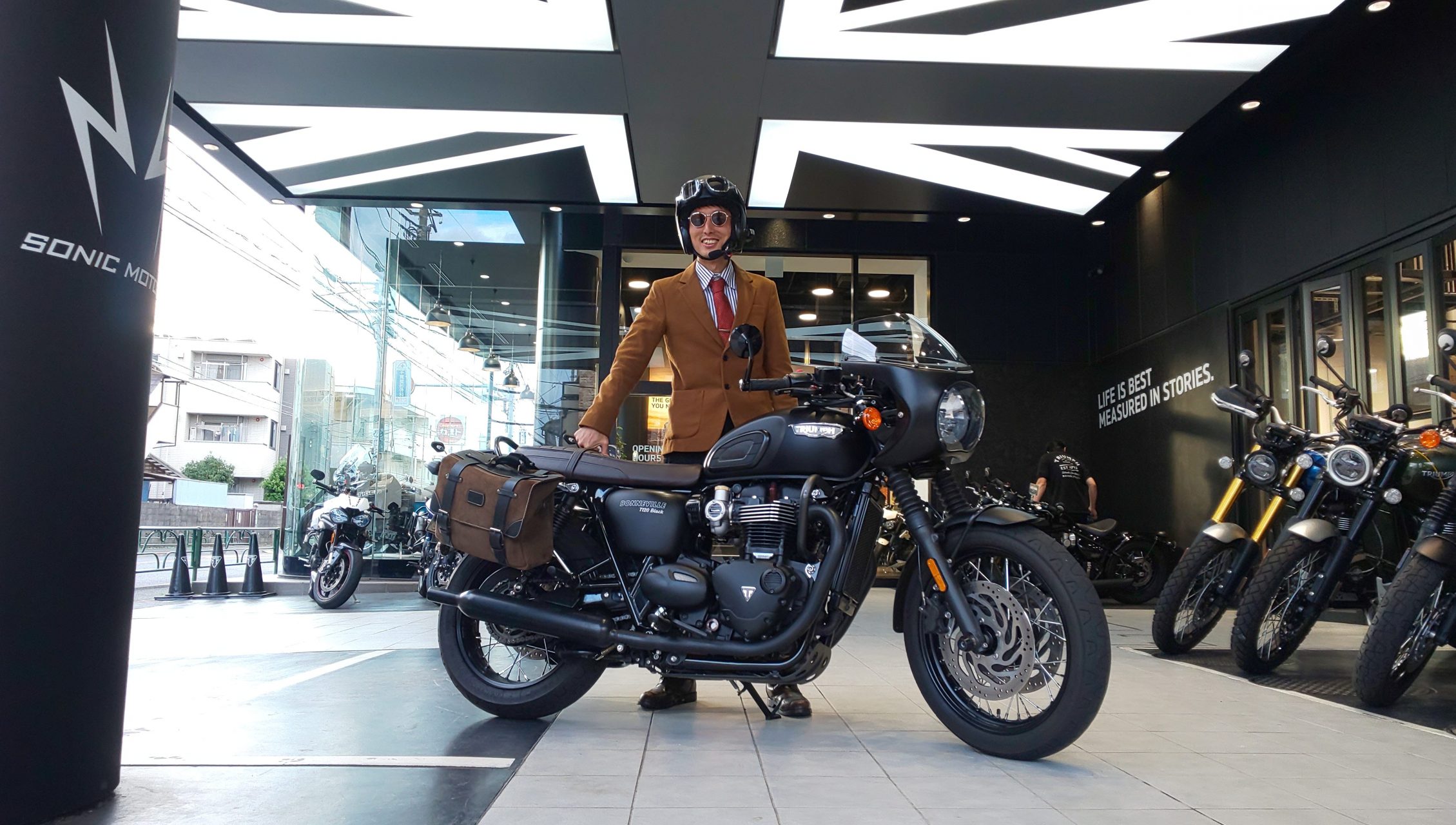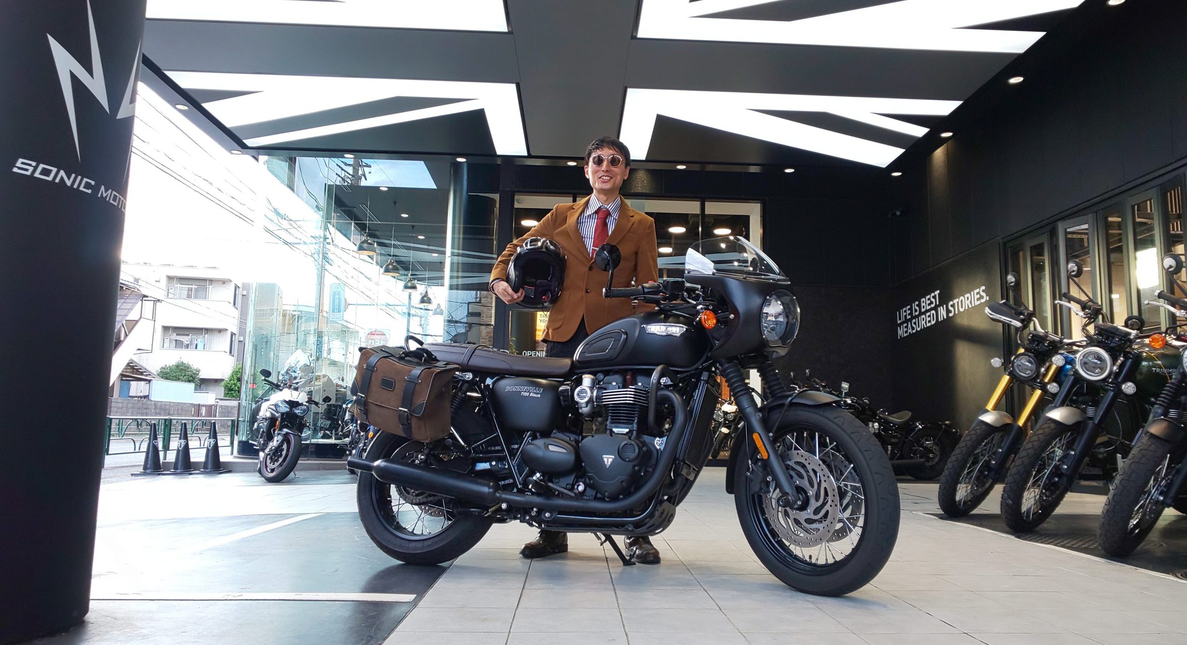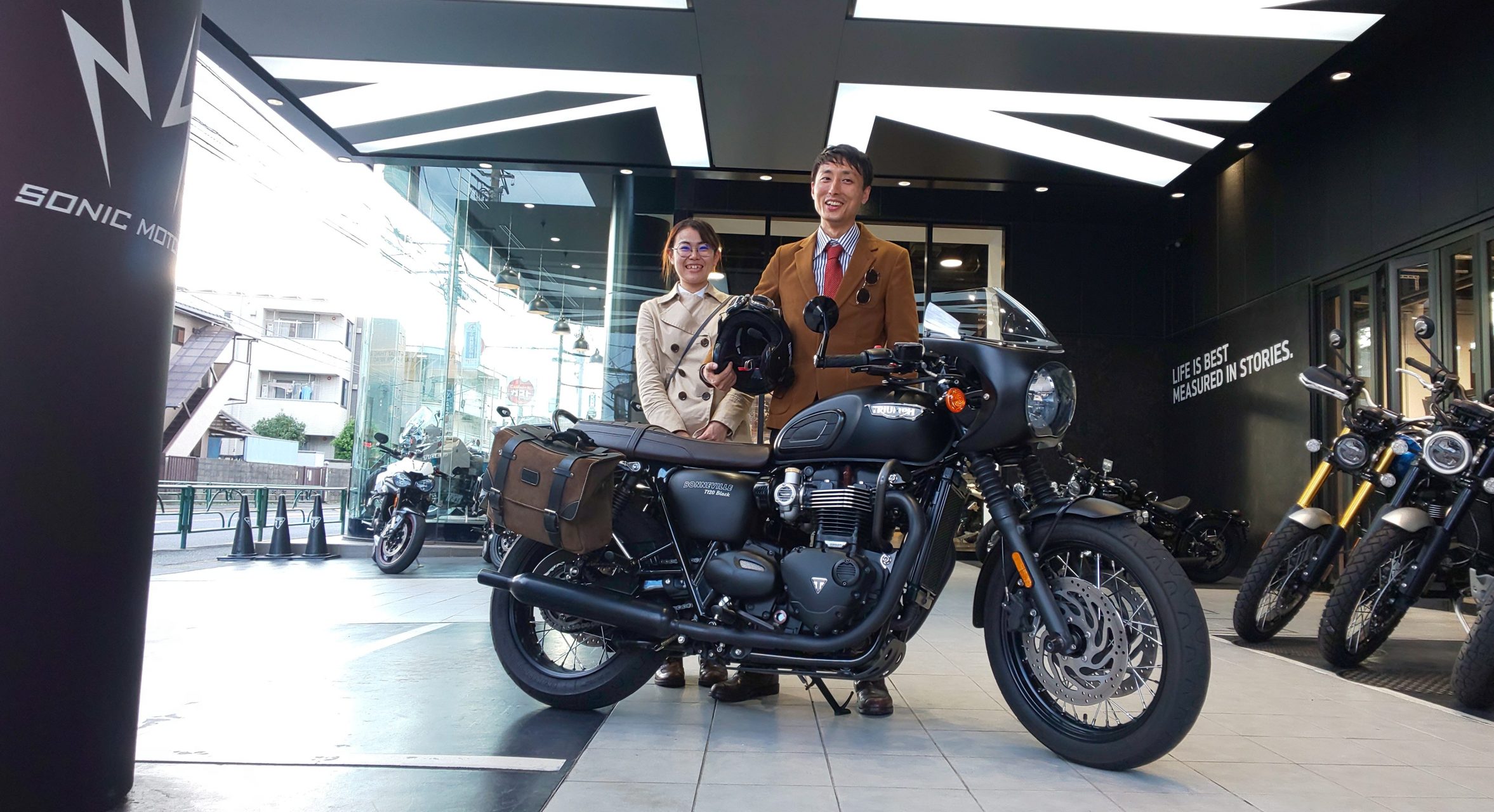 トライアンフ東京の駐車場に、紳士淑女のタンデム車両が入ってくるではありませんかっ(=゚ω゚)ノ