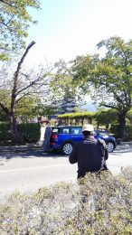 唯一クルマ越しに天守閣を撮影できるポイントにMINIを停めて