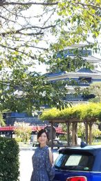 美しい通りを華さんがゆっくりとMINI CLUBMAN を走らせます。