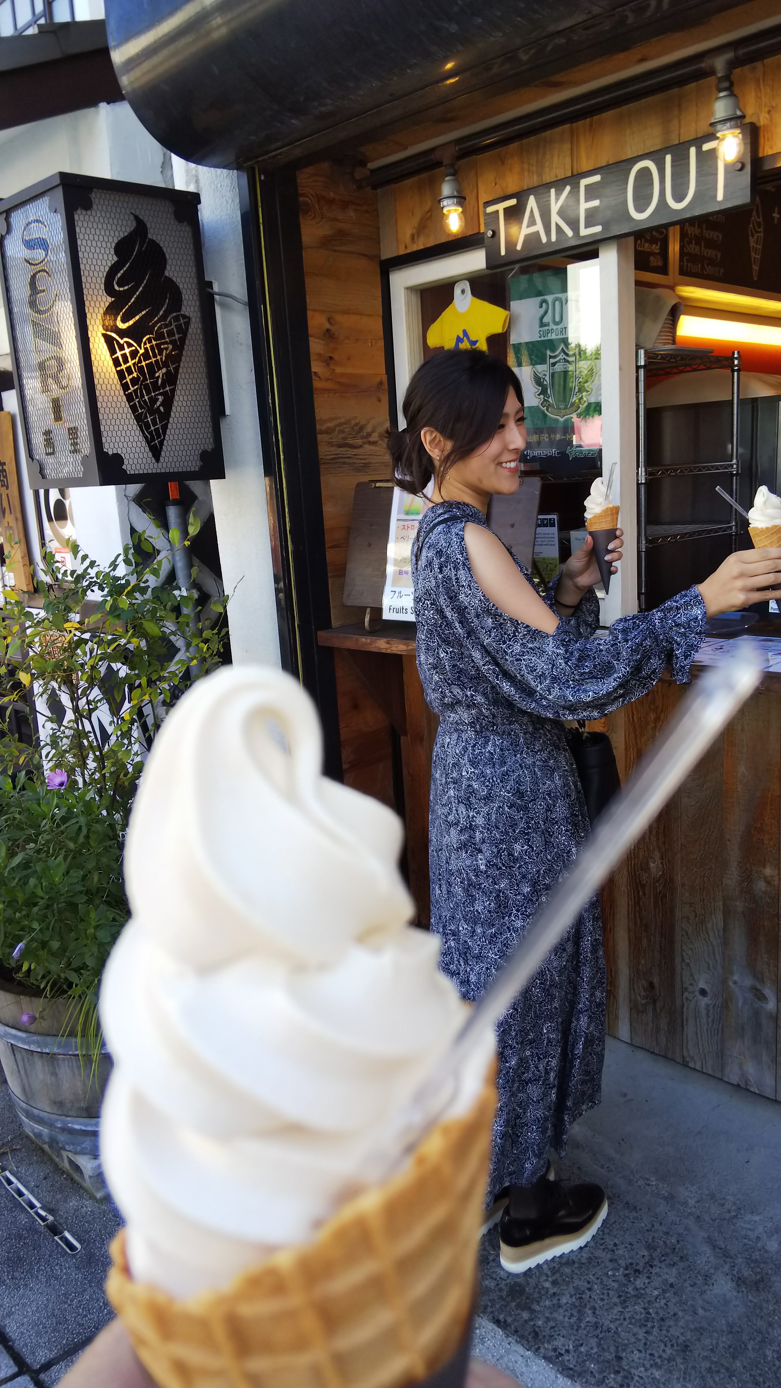 でも、苦しい姿勢でがんばったごほうびにソフトクリームをおごってもらっちゃいました。