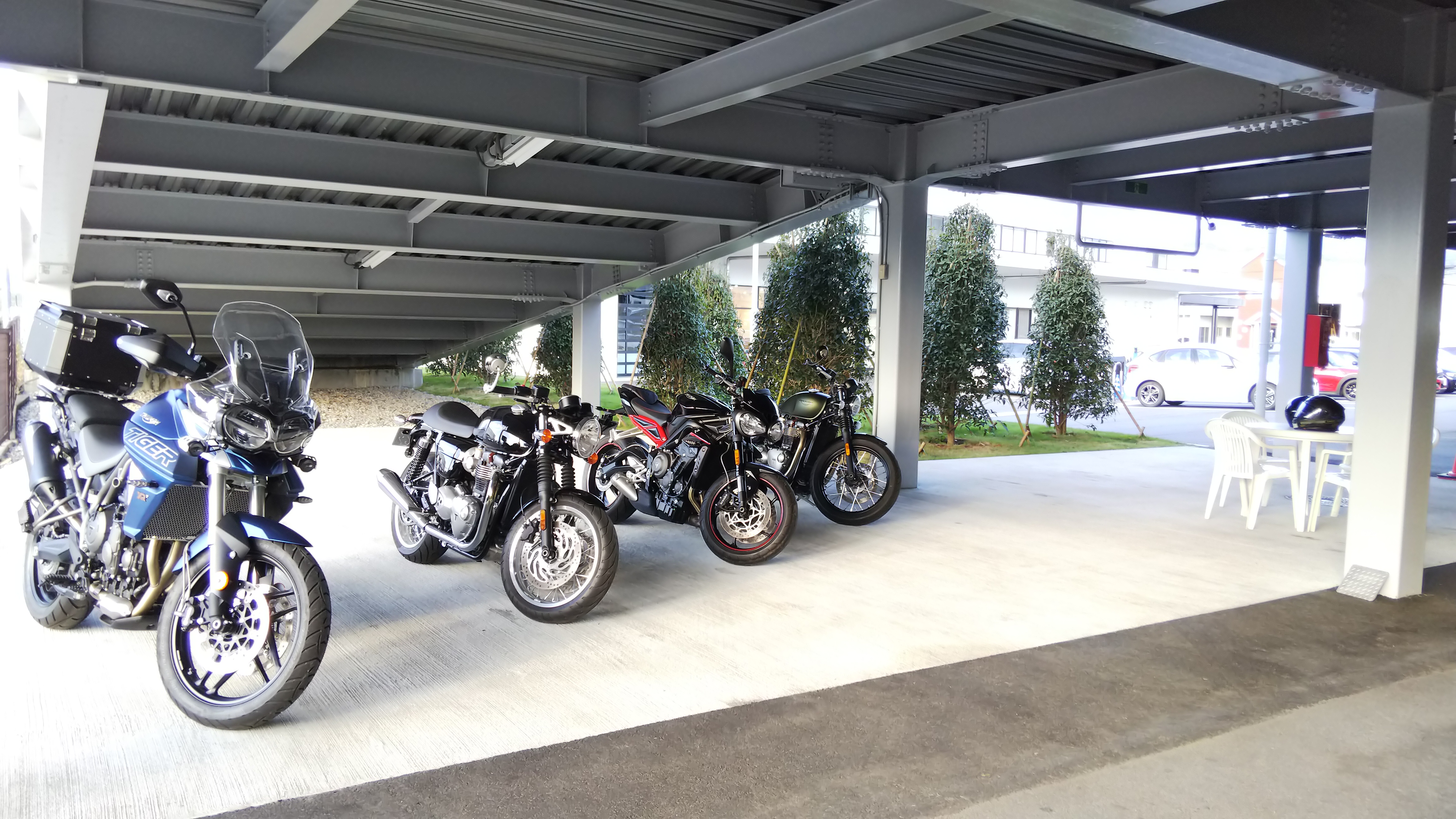 さらに、ライダーフレンドリーの象徴として、屋根つきコンクリート舗装の大型バイク対応駐輪スペースまで。