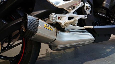 Arrowスリップオンサイレンサーに合わせて、元々高スペックでスポーティーなストリートトリプルRSならではの装備を整え、現代では必須のETCを装着してお乗り出し価格が¥1,680,000と設定しました。