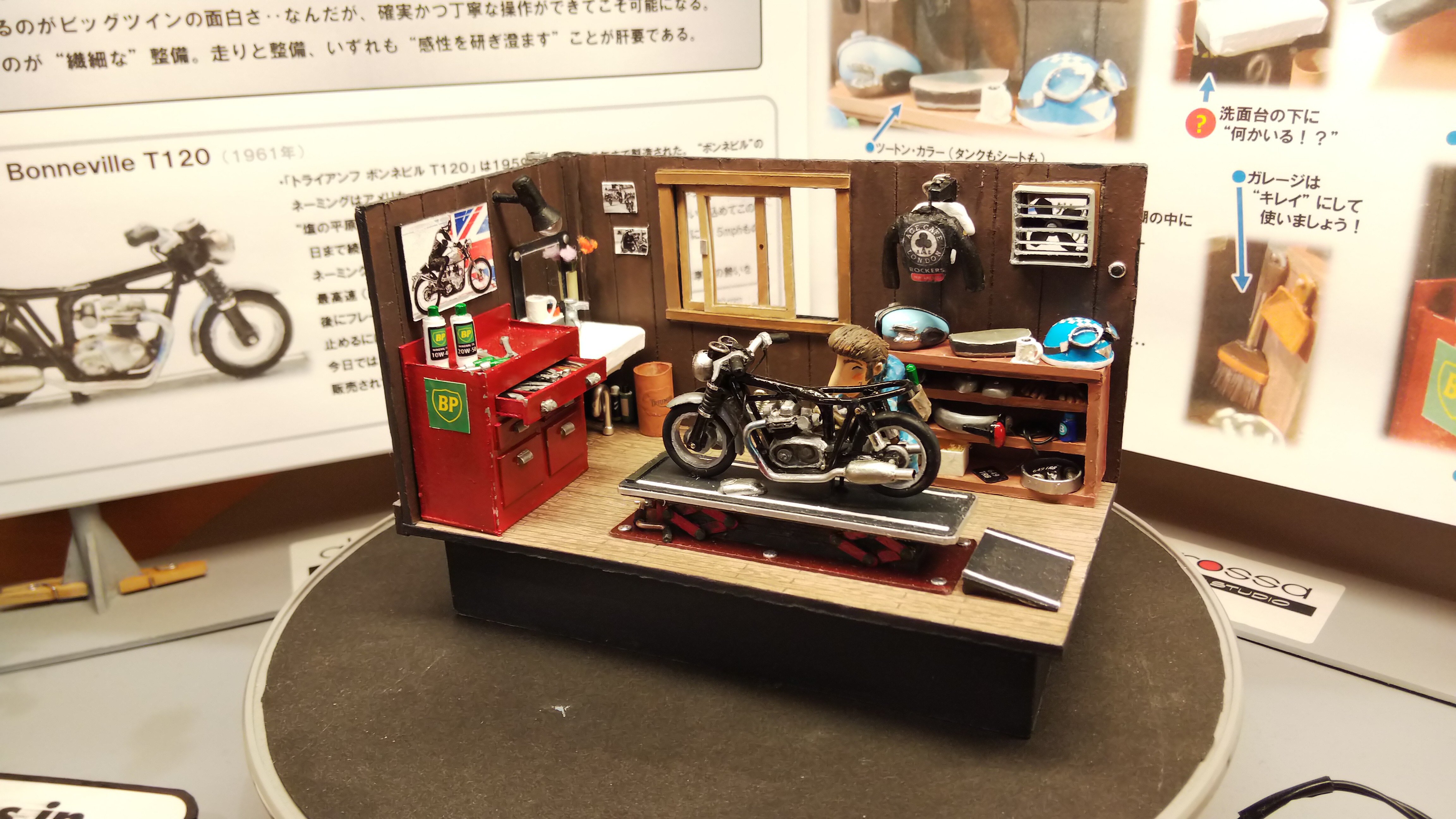 作品は小さなターンテーブルの上に置かれていて、スイッチを押すとゆっくりと回転します。