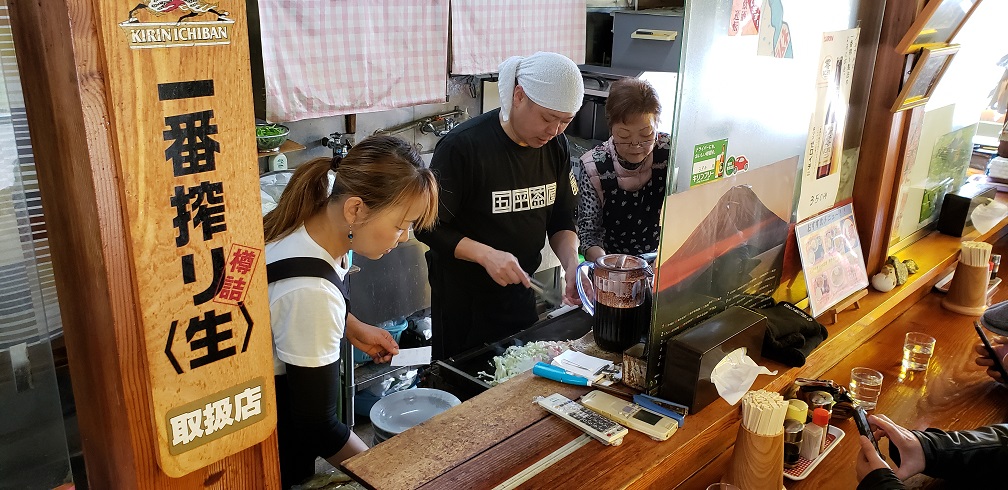 早々にオーダーを済ませると、店内にはソースの良い香りが!OKBがたまらず厨房に釘付けになったのは言うまでもありません。