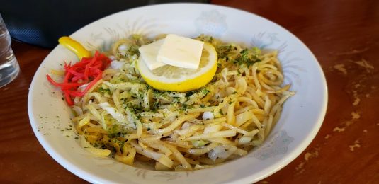 しかし下見の時にノーマル焼きそばを食べていたOKBは、珍しい「塩バターレモン焼きそば」を注文!当然大盛り!