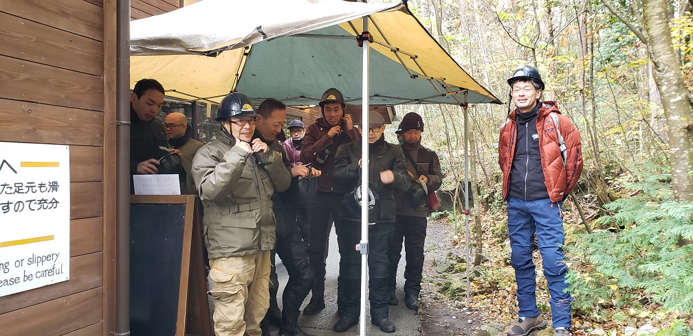 受付を済ませ、洞窟マスターのおじちゃんの話を真剣に聞きます。