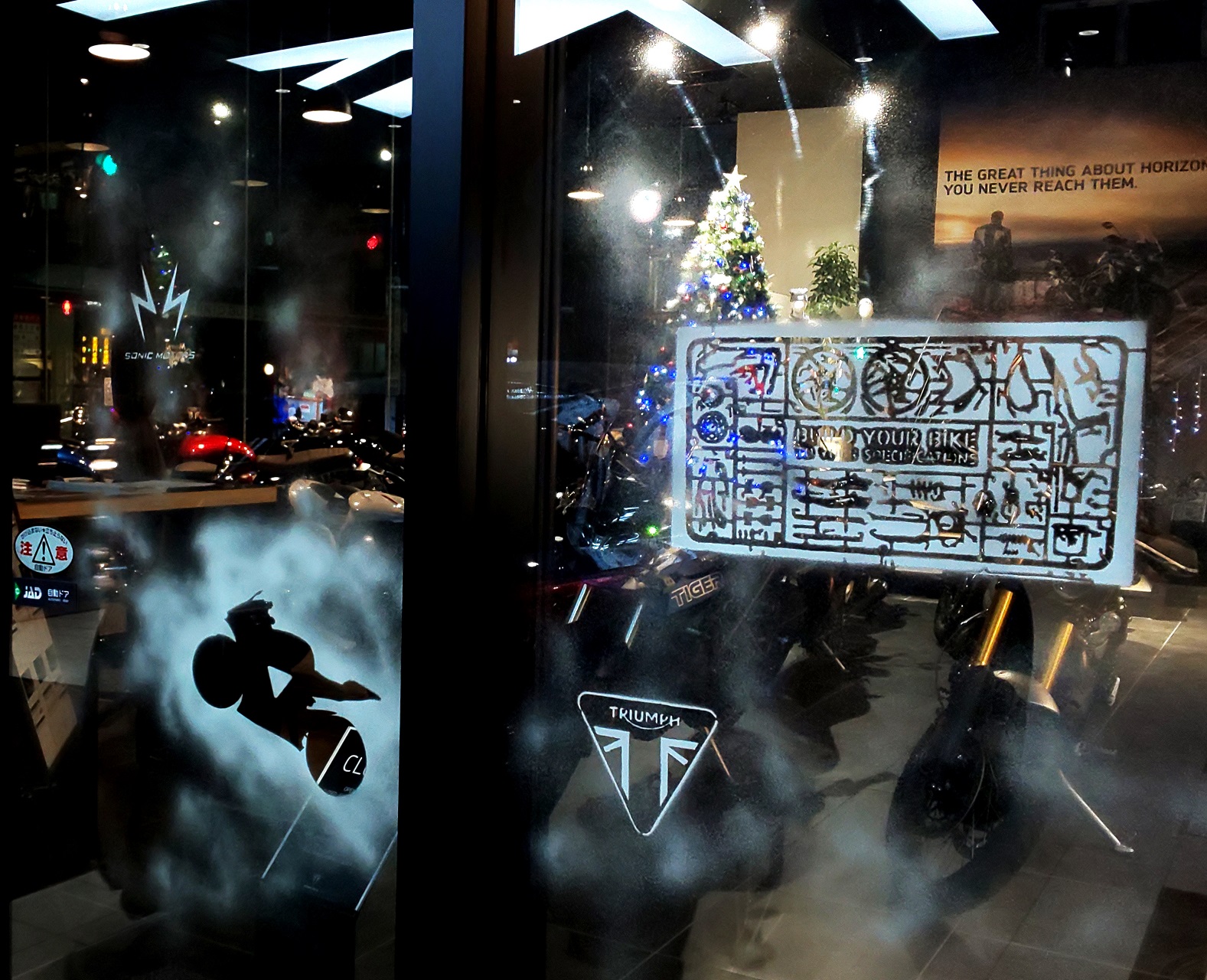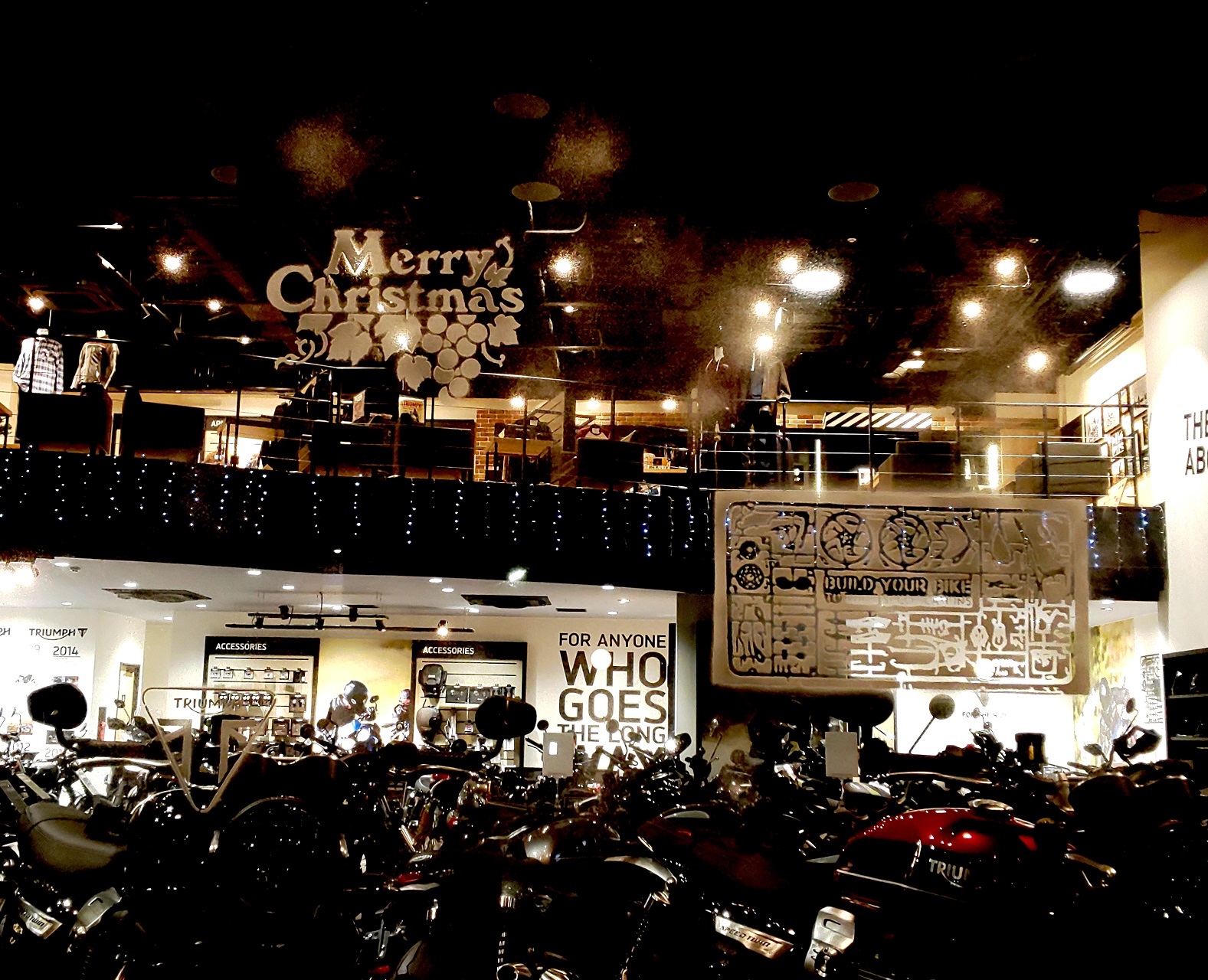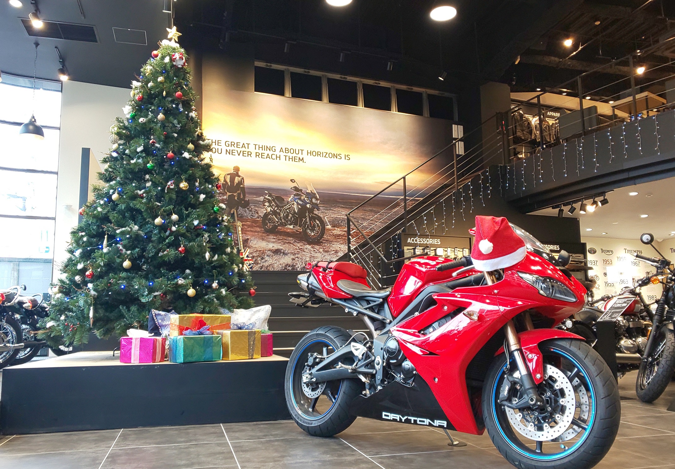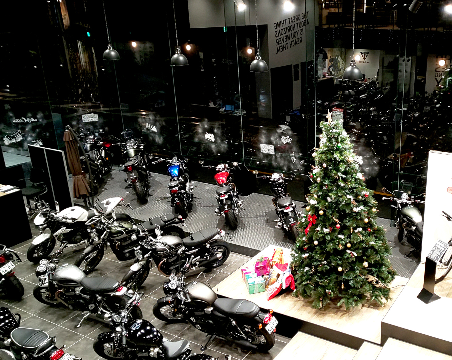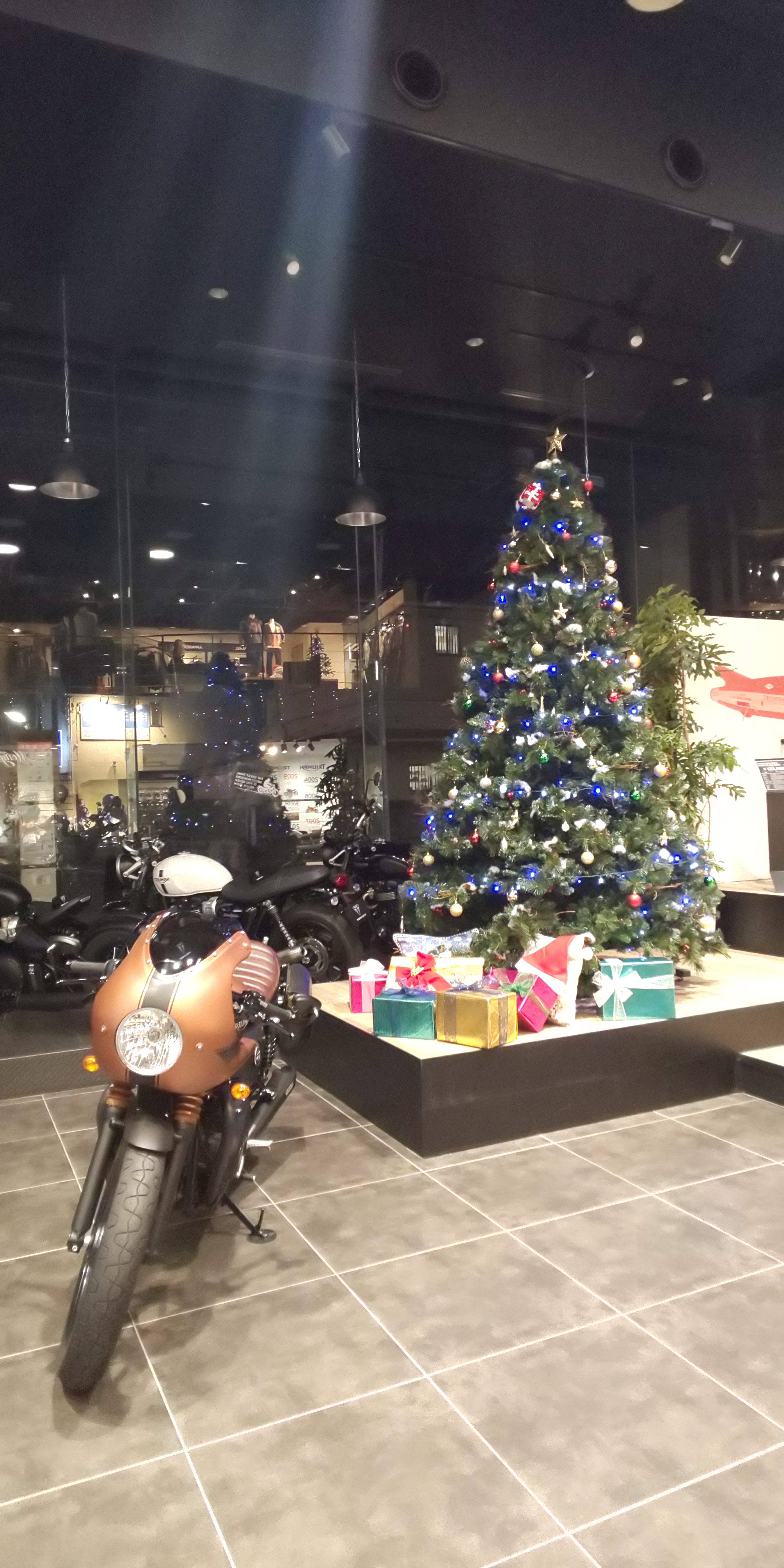 そんな訳で、トライアンフ東京、今年もクリスマス仕様になりましたヾ(≧▽≦)ノ