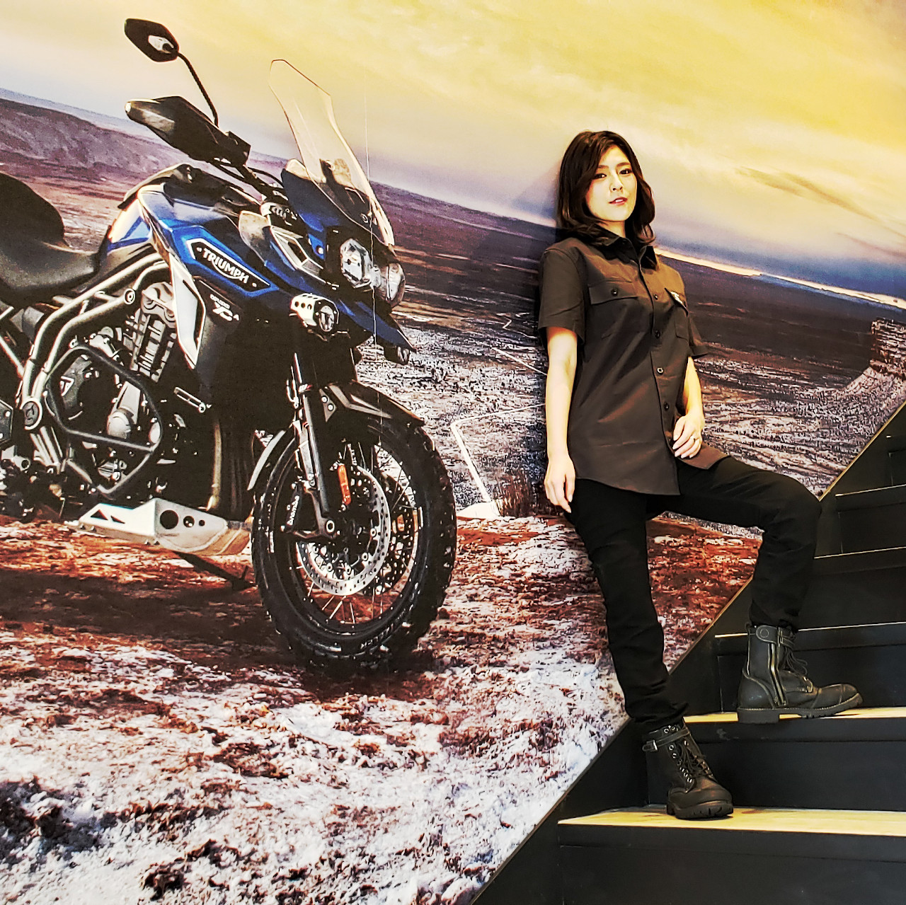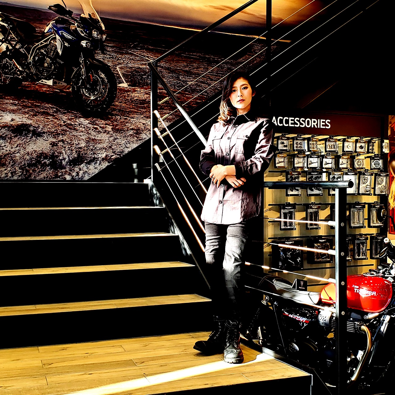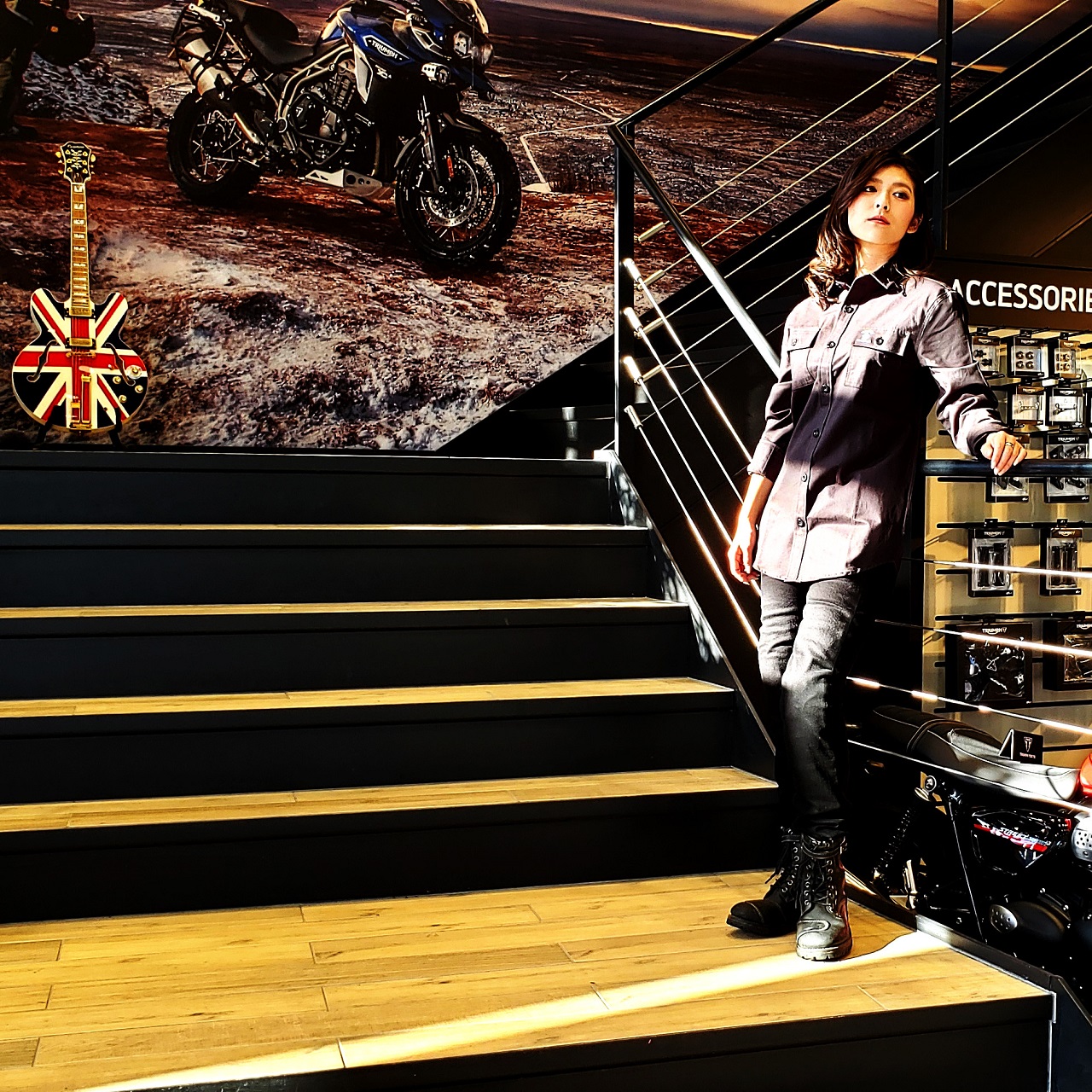 トライアンフの純正クロージングを素敵なモデルさんたちに着ていただき、サイズ感をお伝えしよう!の采女華さんバージョン第二弾。