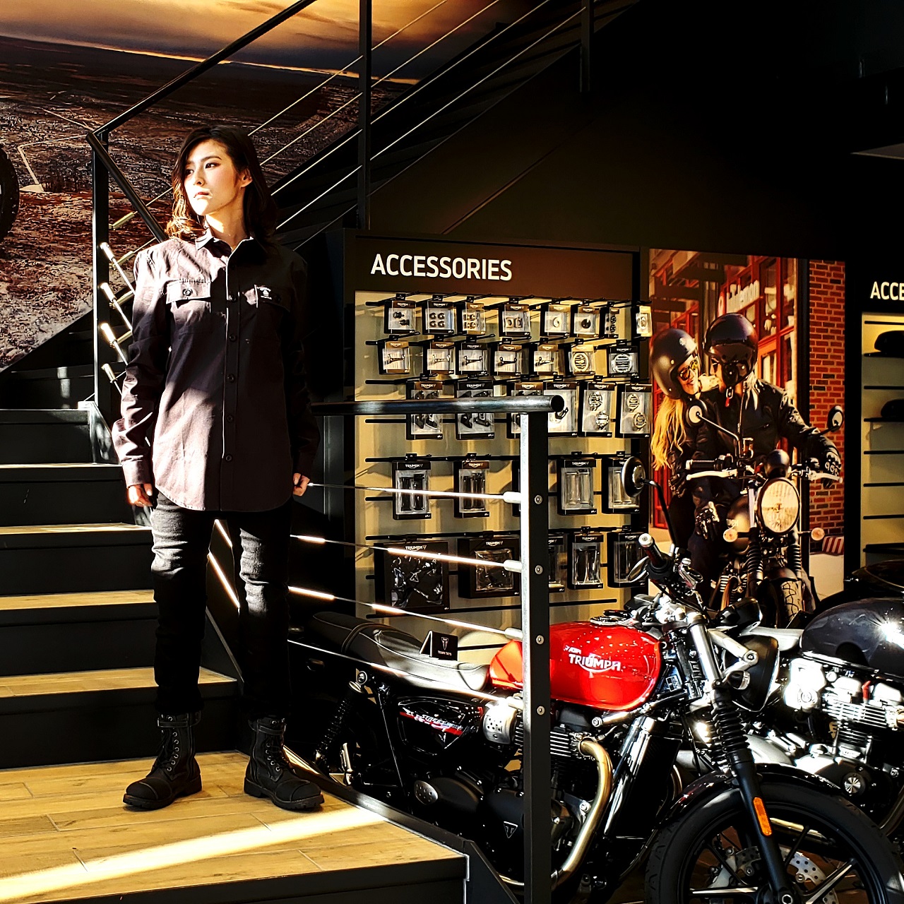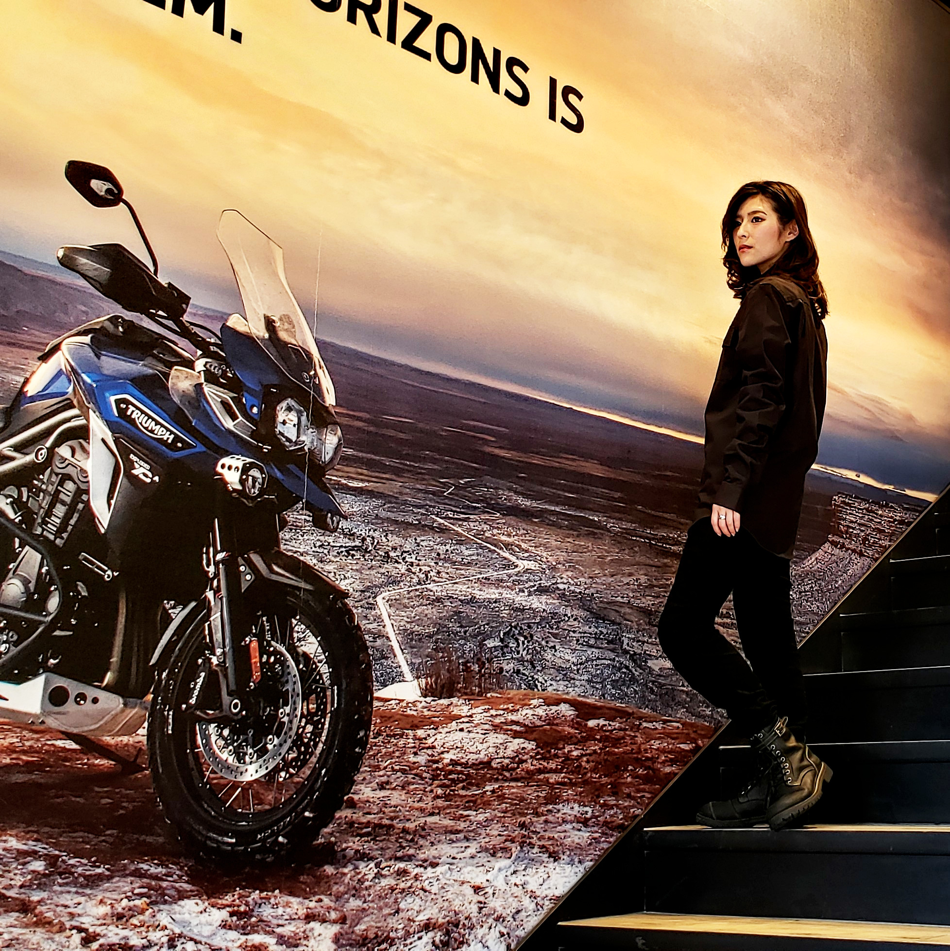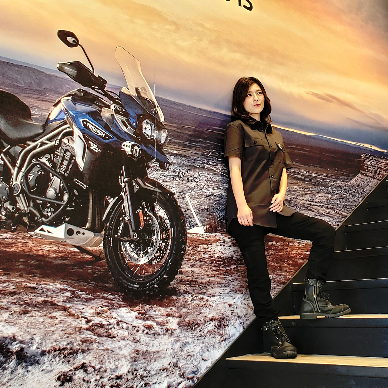 トライアンフの純正クロージングを素敵なモデルさんたちに着ていただき、サイズ感をお伝えしよう!の采女華さんバージョン第二弾。