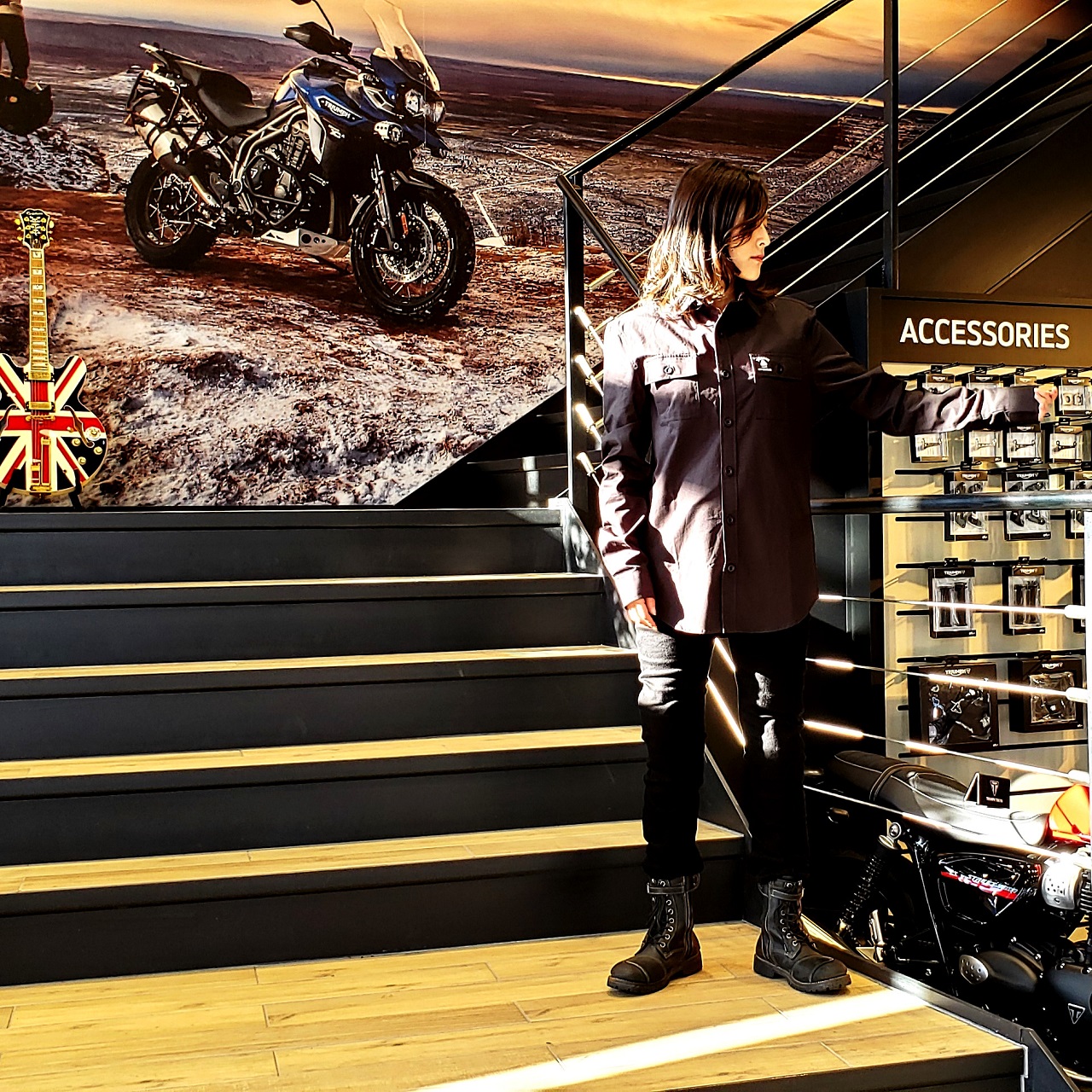 ライディング中に着る、というより、普段着ている時にさりげなくライダーアピール(TRIUMPH × ACE CAFE 、ですから)する、というのも良いのではないでしょうか(*´ω`*)