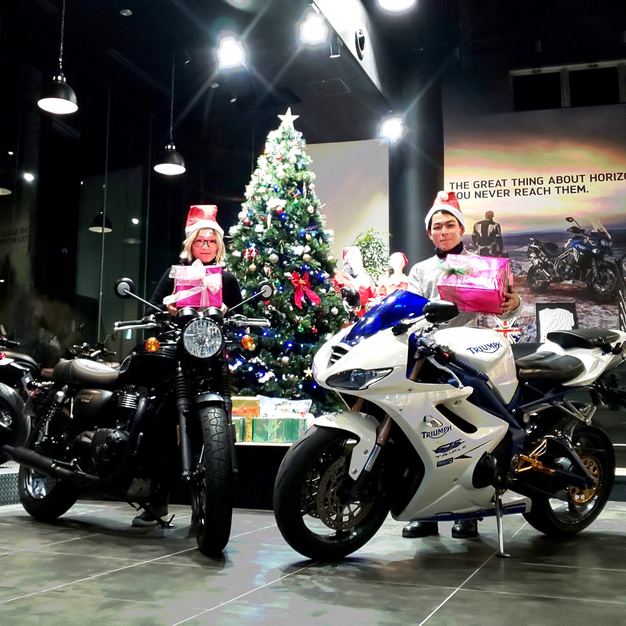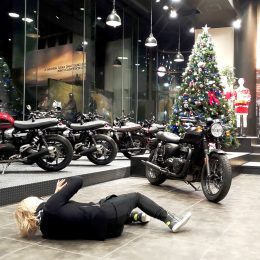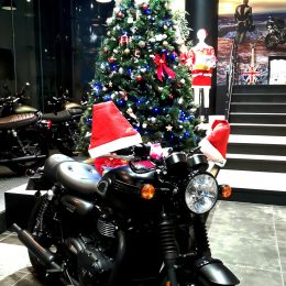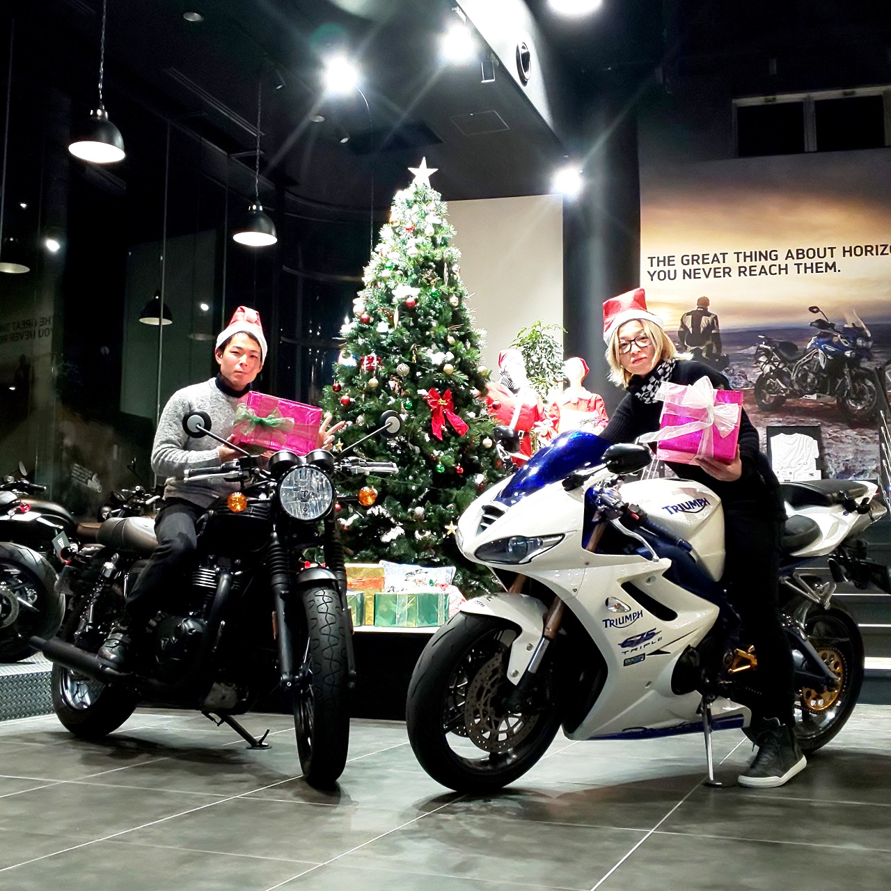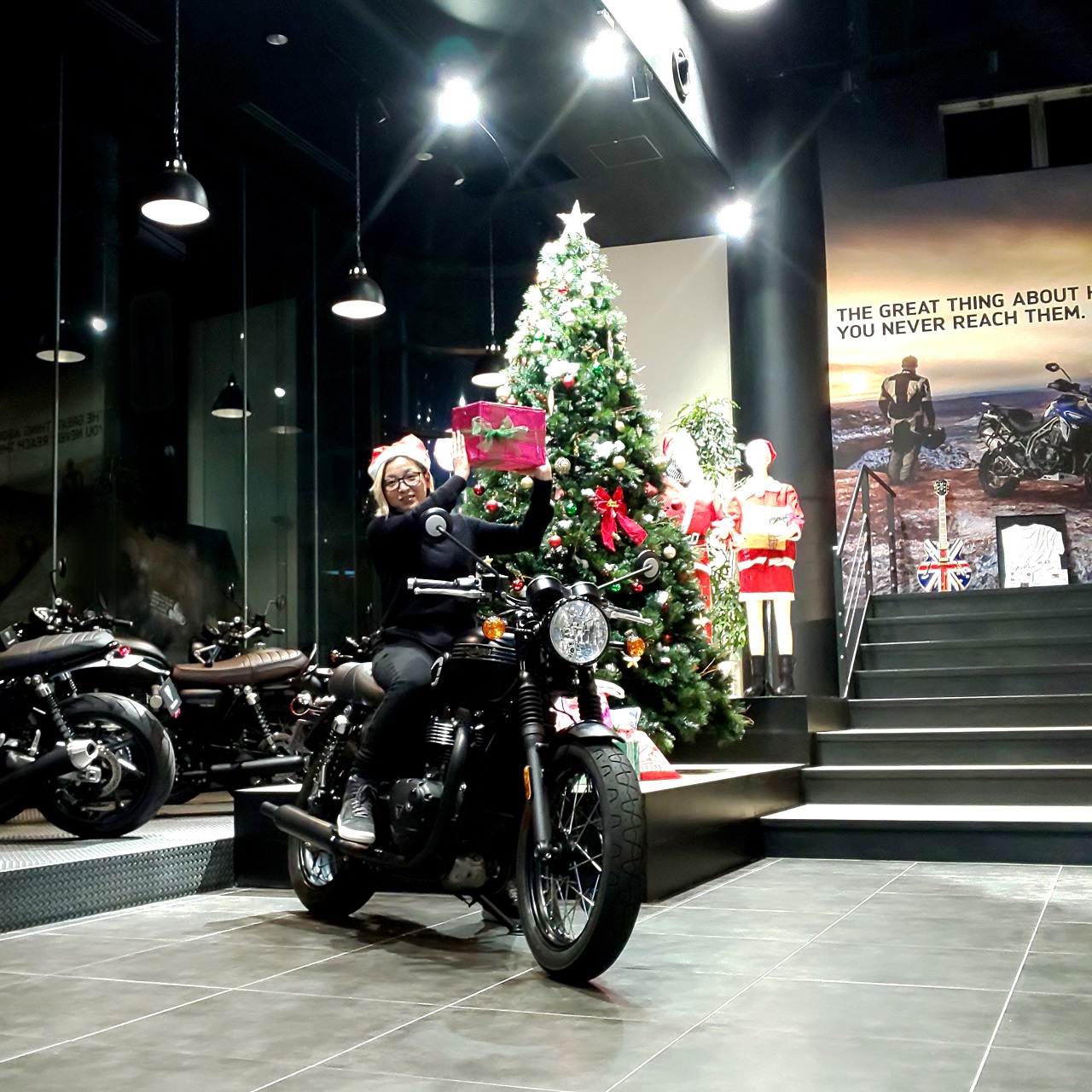 夜カフェや先日のクリスマスパーティーでもすっかりおなじみの愛さんと、愛車のBonneville T100 Blackです。