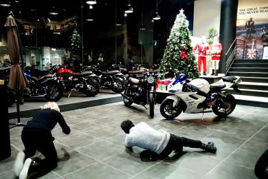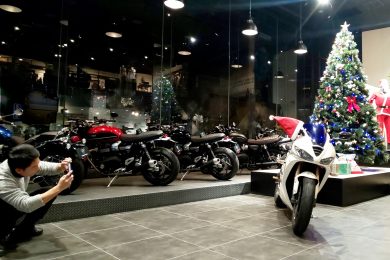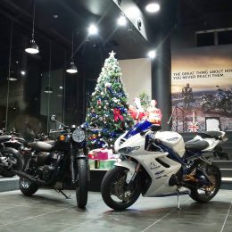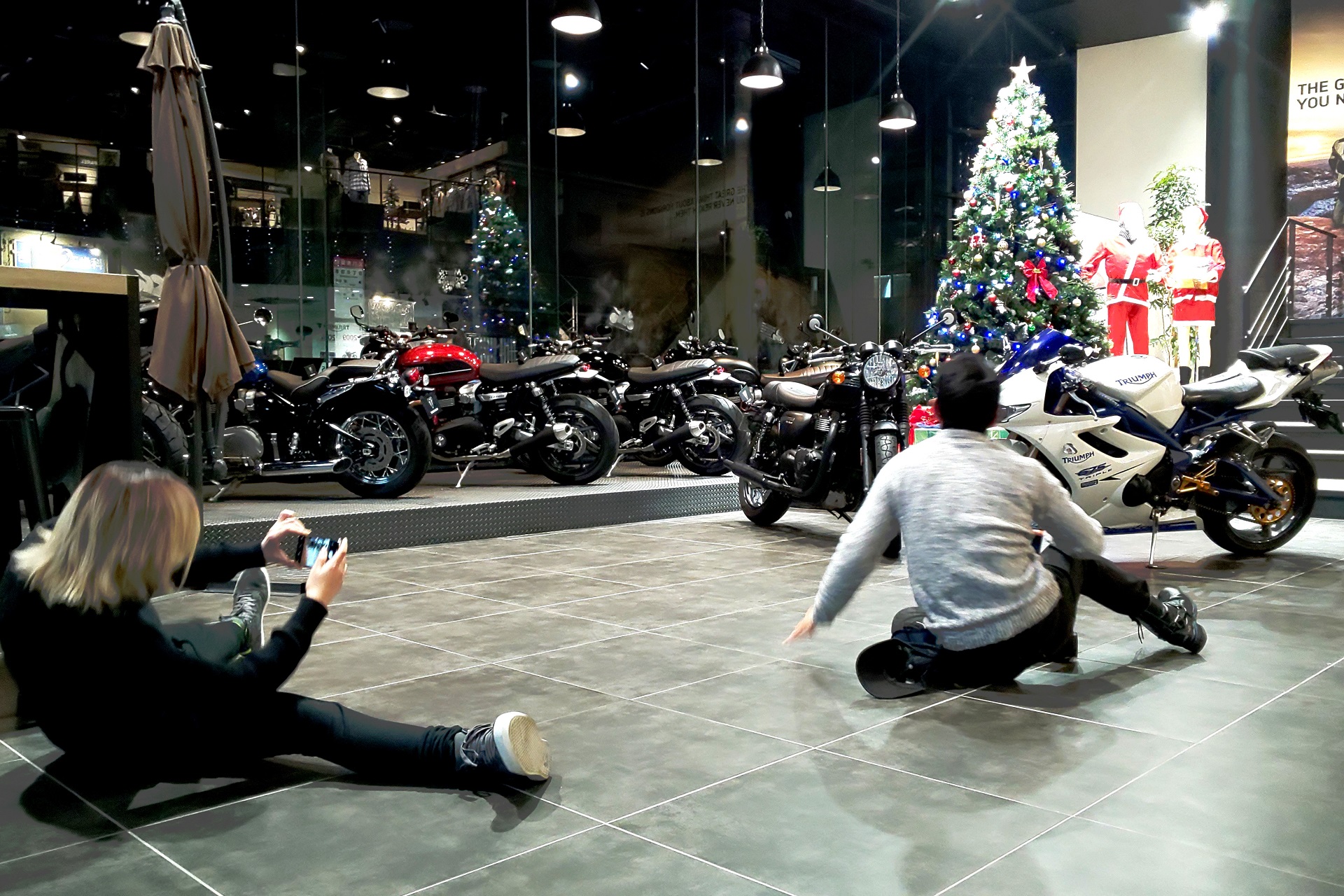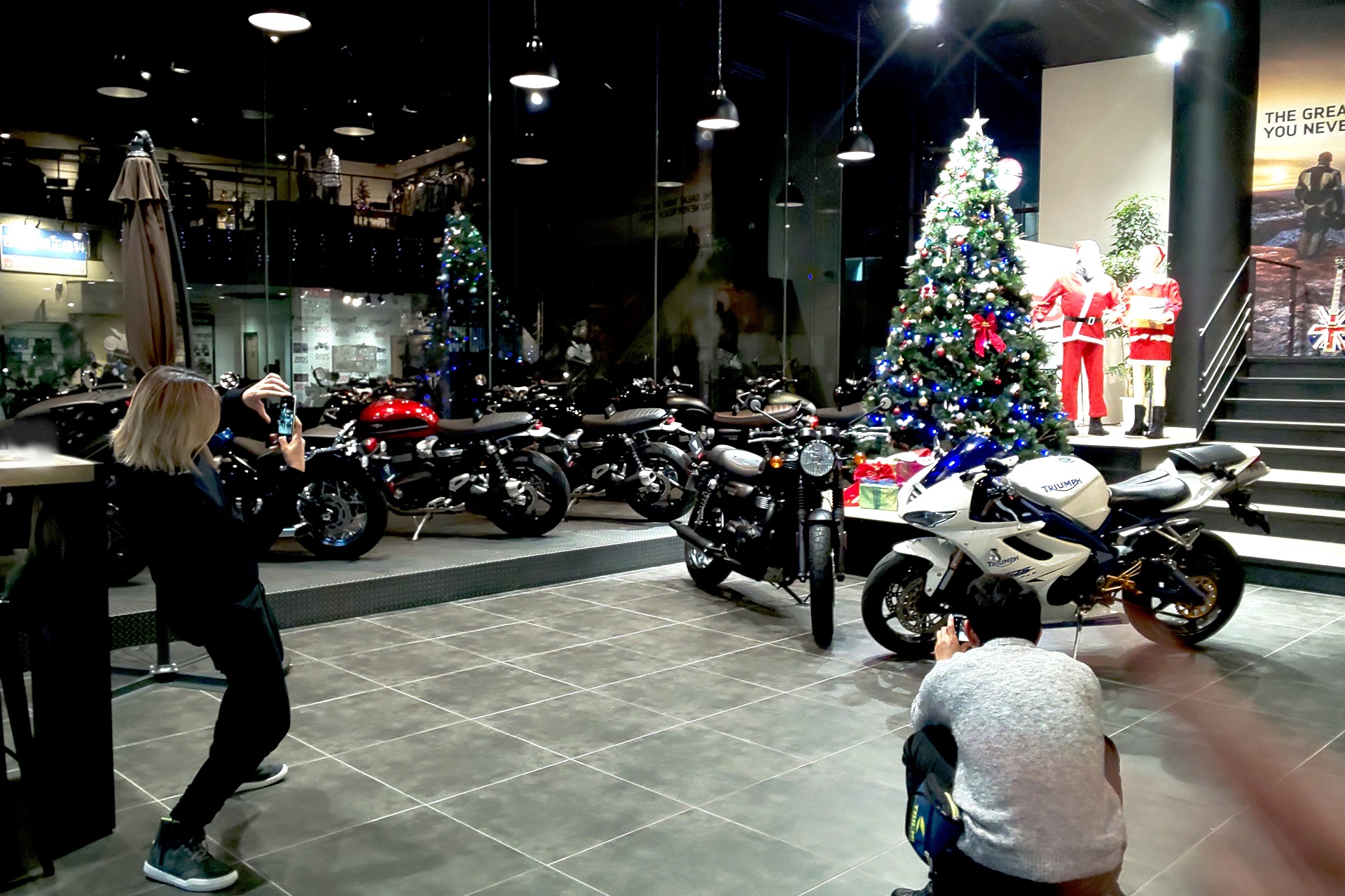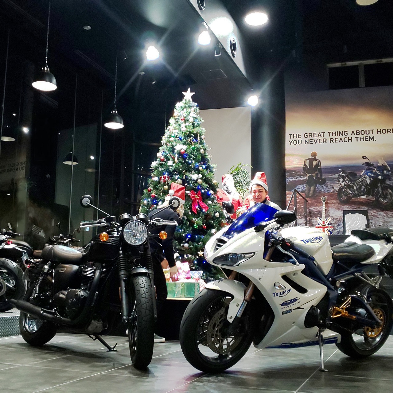夜カフェや先日のクリスマスパーティーでもすっかりおなじみの愛さんと、愛車のBonneville T100 Blackです。