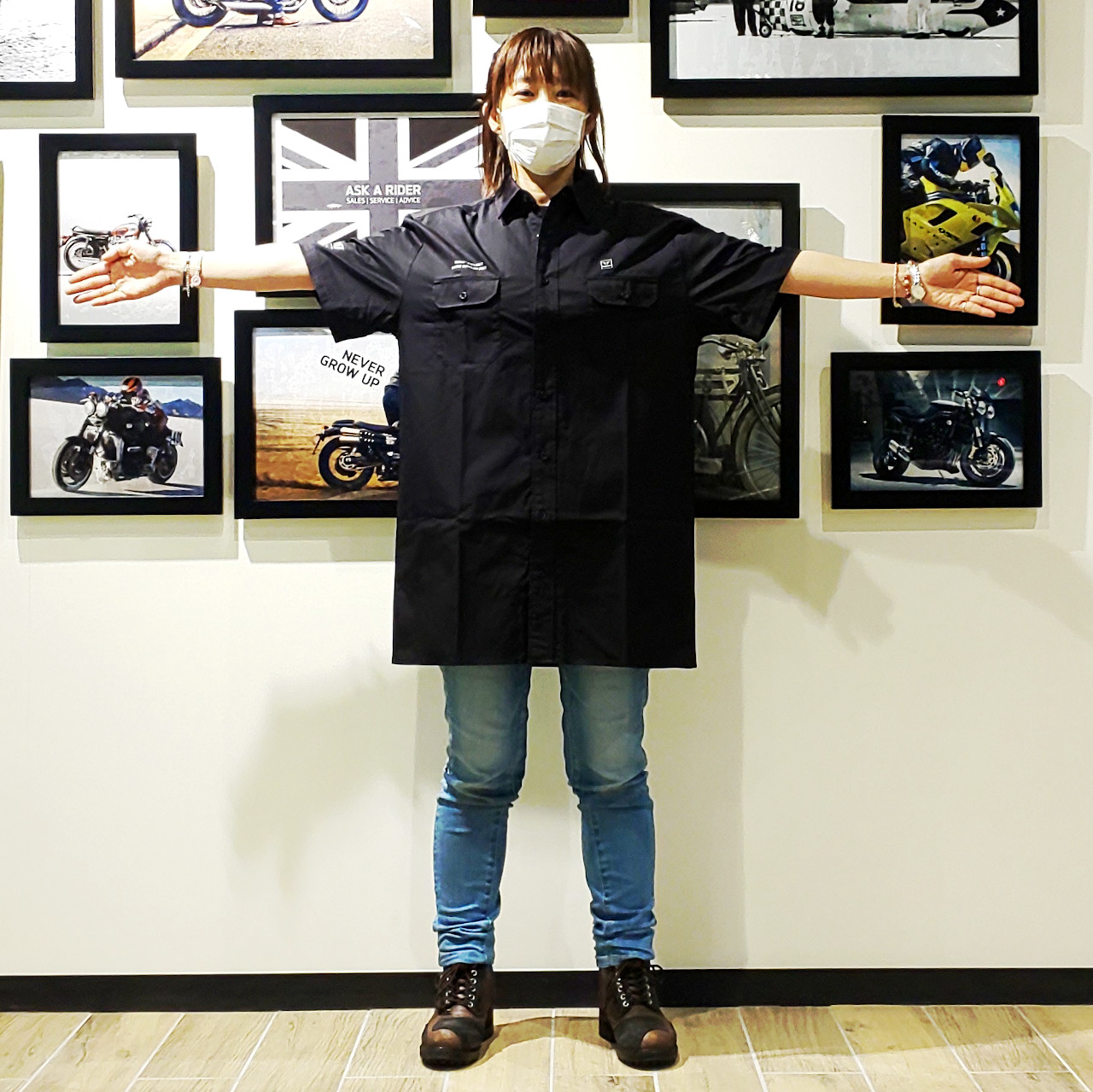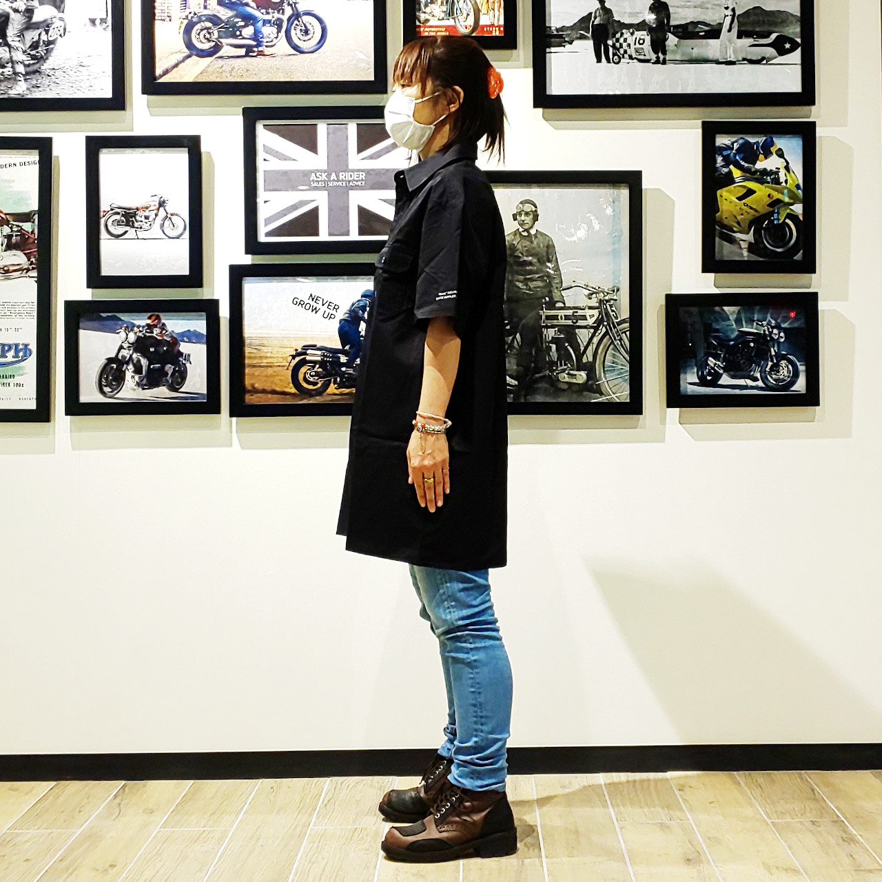 ECサイトでも、なるべくお分かりいただければ…と、またまた当店スタッフに着用してもらいました。
